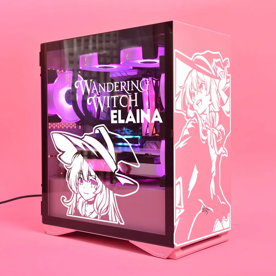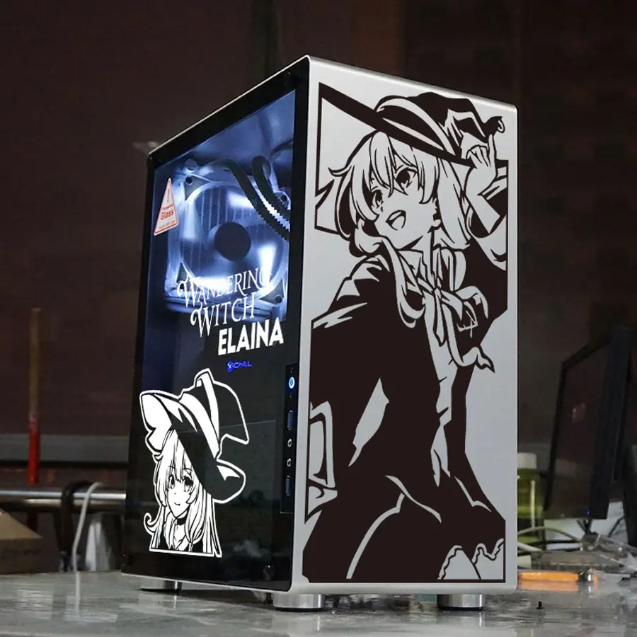Comprar Elaina pegatinas de Anime para funda de PC, calcomanías de decoración de dibujos animados japoneses para piel de chasis de computadora Atx, pegatina impermeable hueca
