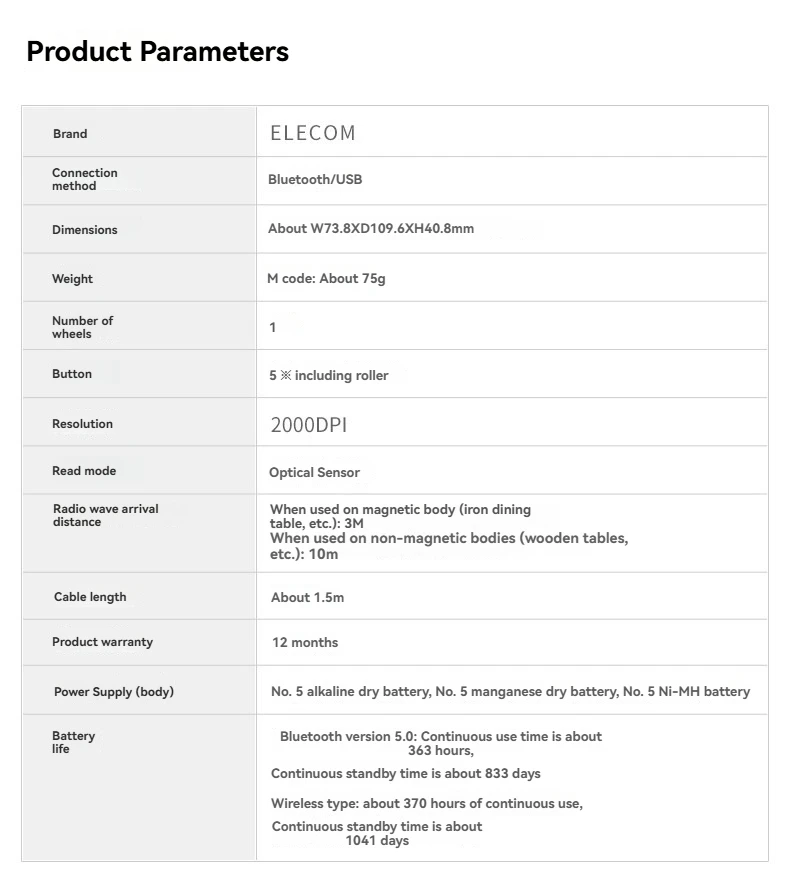 Nombre del producto:Ratón Inalámbrico Bluetooth ELECOM