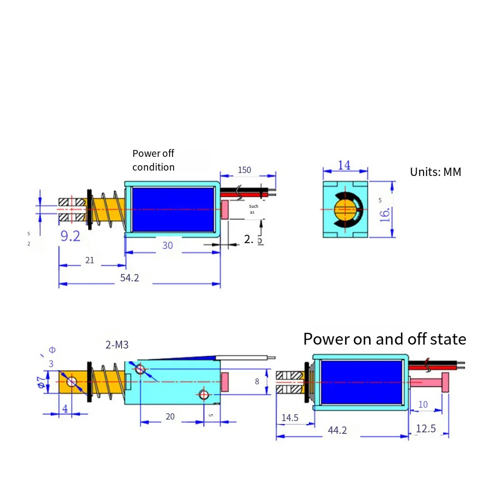 Fuerte fuerza magnética: Este electroimán compacto presenta una fuerte fuerza magnética y un funcionamiento preciso, lo que lo hace adecuado para aplicaciones que requieren movimientos Push-pull.