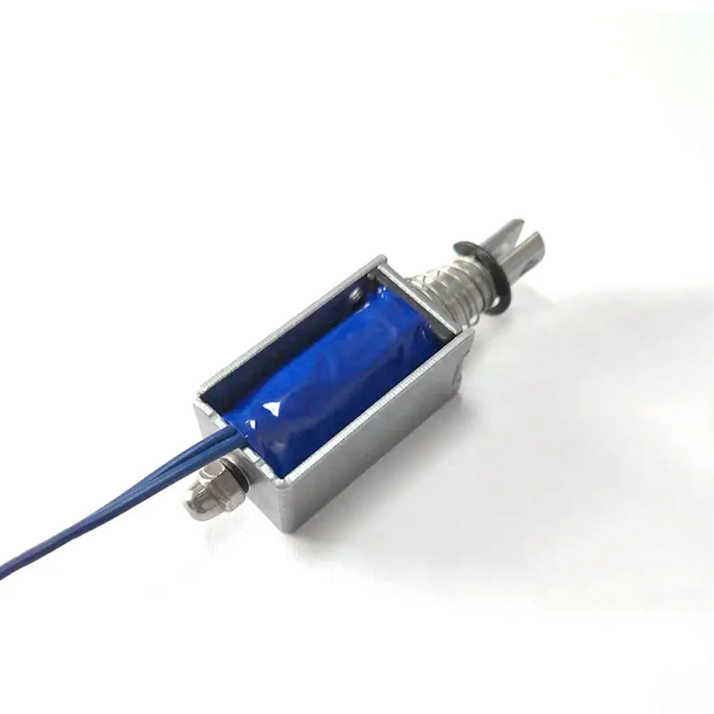 Fuerte fuerza magnética: Este electroimán compacto presenta una fuerte fuerza magnética y un funcionamiento preciso, lo que lo hace adecuado para aplicaciones que requieren movimientos Push-pull.