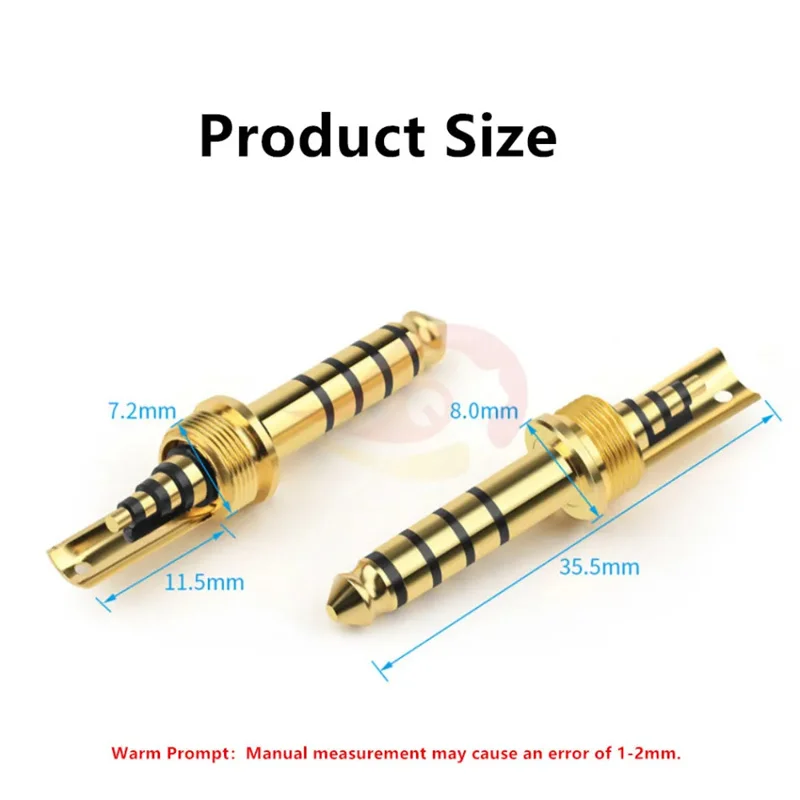Nombre del producto: Conector de reparación de auriculares 4,4mm chapado en oro conector de auriculares de rosca 7,2 conector de audio de mm