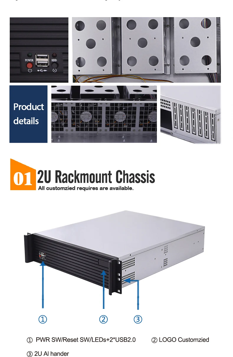 Comprar Elegante 2U 2023 MM de profundidad, servidor, caja de ordenador, soporte de placa base de M-ATX con ventiladores silenciosos de alta velocidad de 4x550mm, 8025