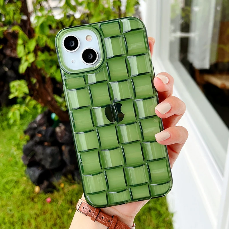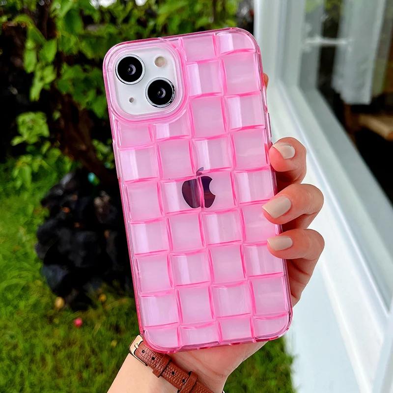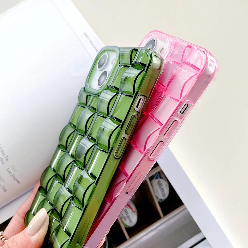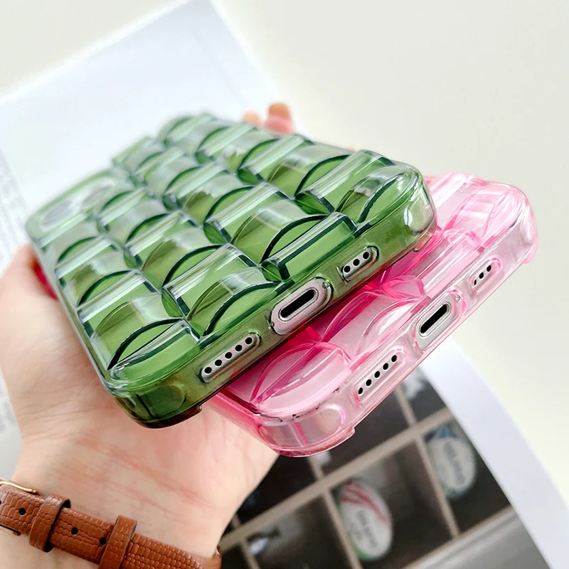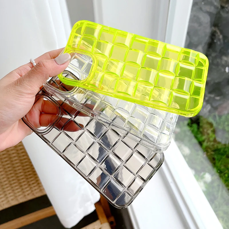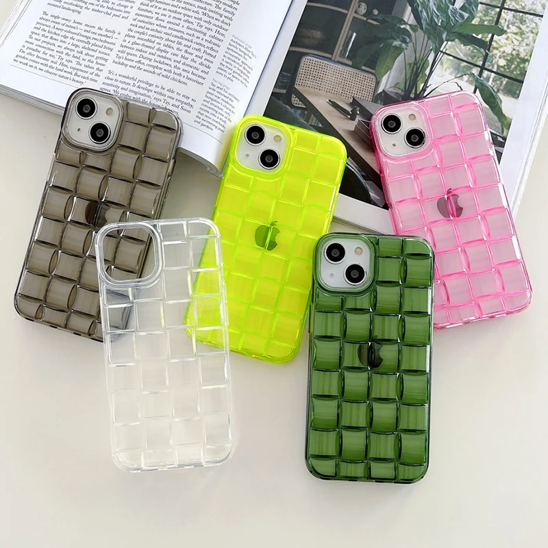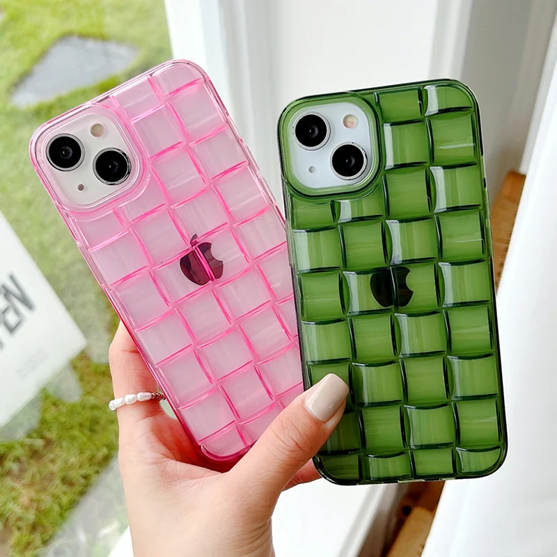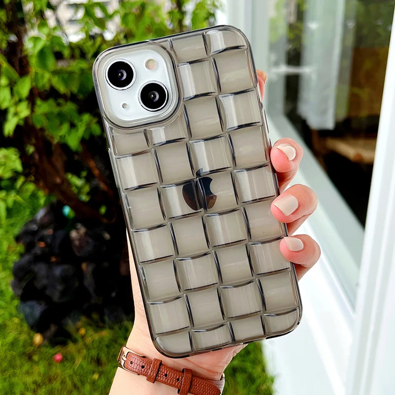 Elegante funda transparente suave con cubitos de hielo 3D para iPhone 14 Pro Max 13 11 12 XS XR X 7 8 14 Plus SE tejido BV cubierta de silicona con rejilla