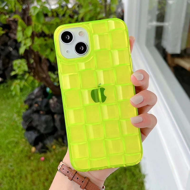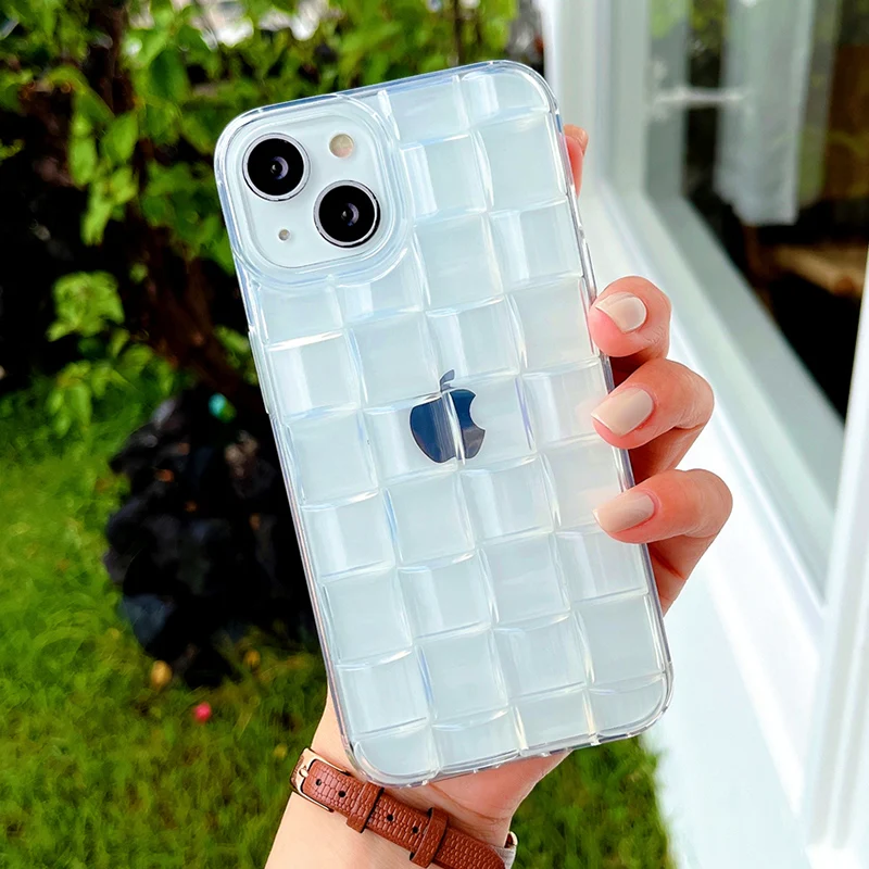 Elegante funda transparente suave con cubitos de hielo 3D para iPhone 14 Pro Max 13 11 12 XS XR X 7 8 14 Plus SE tejido BV cubierta de silicona con rejilla