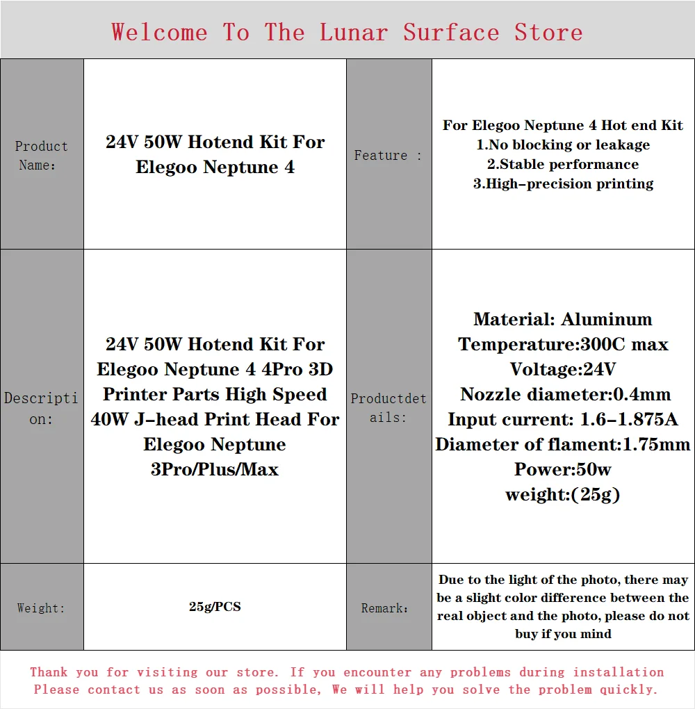 Comprar Elegoo-piezas de impresora LS-3D Neptune 4 /Pro, Kit Hotend 24V 50W, actualización Bimetal Heatbreak, Cartucho de bloque calentado, varilla de calentamiento