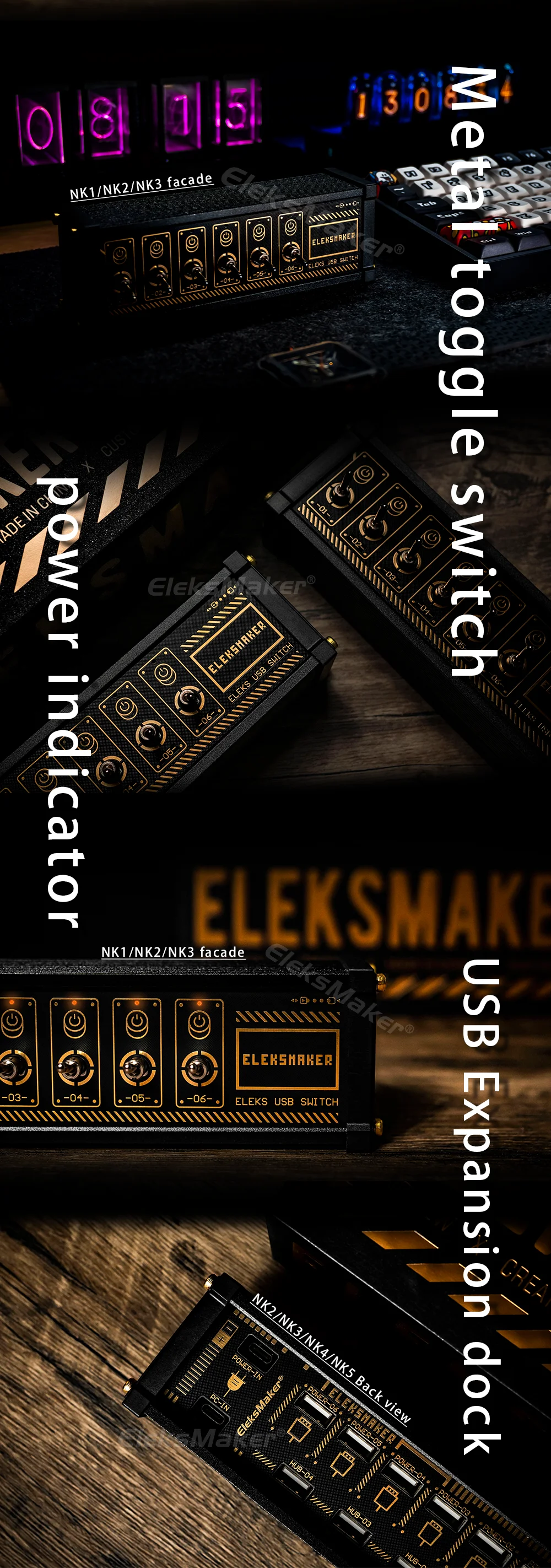 Comprar EleksMaker-controladores de enchufe con interruptor USB, enchufe de palanca, Control eléctrico, encendido y apagado del ratón, luces indicadoras Retro, bloque de electrodomésticos