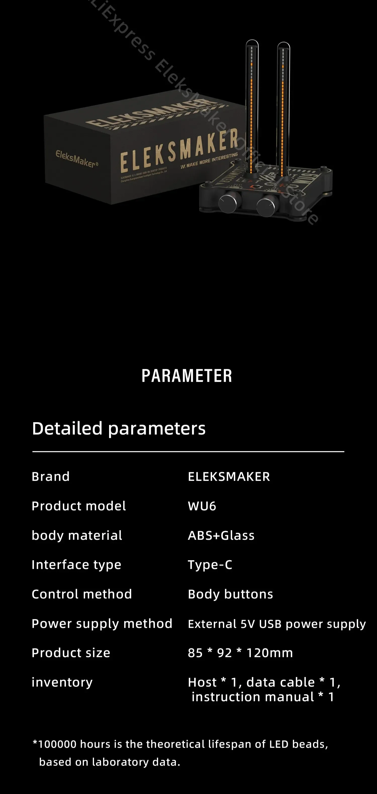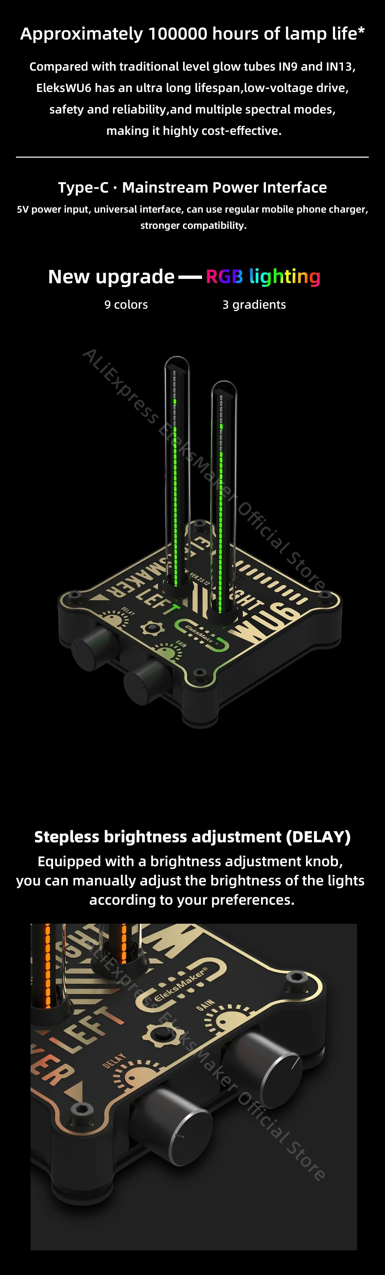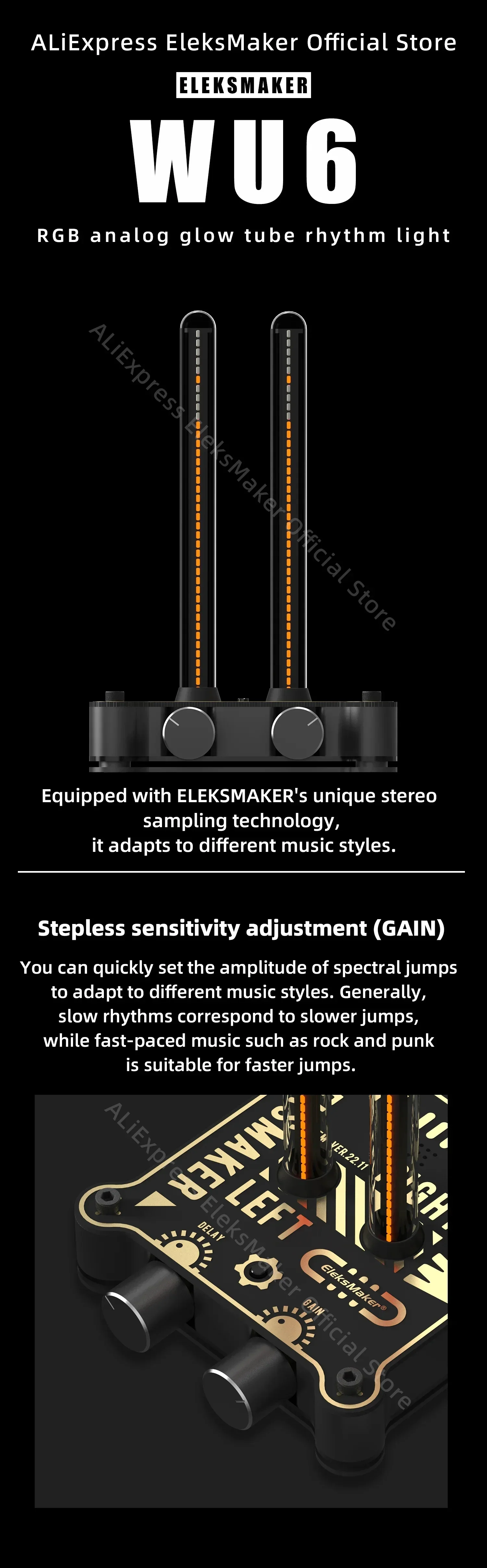 EleksMaker| WU6 RGB tubo incandescente tubo electrónico espectrómetro de música medidor de nivel decoración de escritorio luz de ritmo