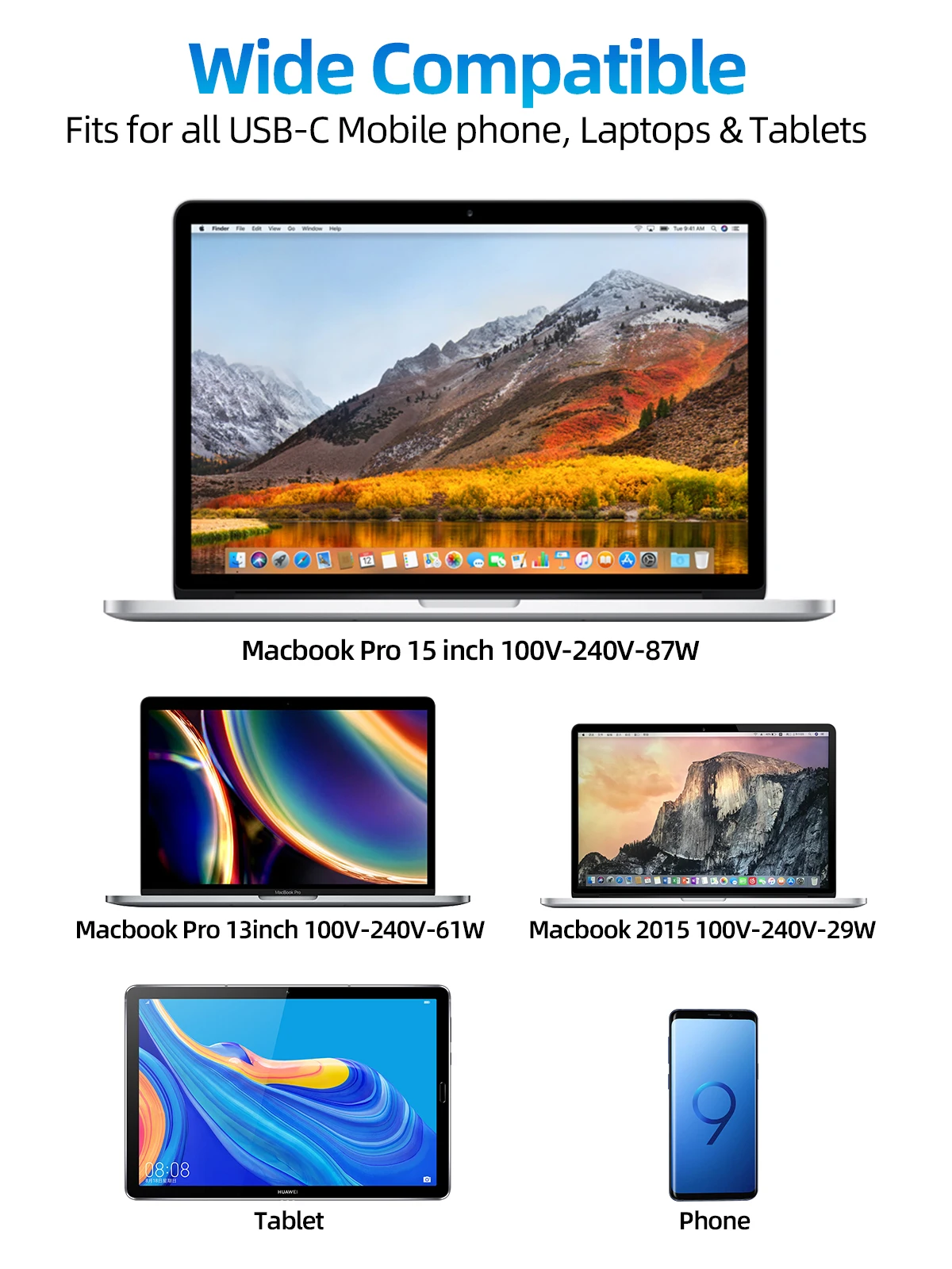 【Compatibilidad】Compatible con MacBook Pro 2015-2021, Elsad Pro, Dell XPS y más portátiles, tabletas y teléfonos inteligentes con interfaces USB-C y tipo C.Tenga en cuenta que nuestro adaptador magnético sin cable de carga magnético.Puedes elegir nuestro cable de carga magnético de 100W / 60W