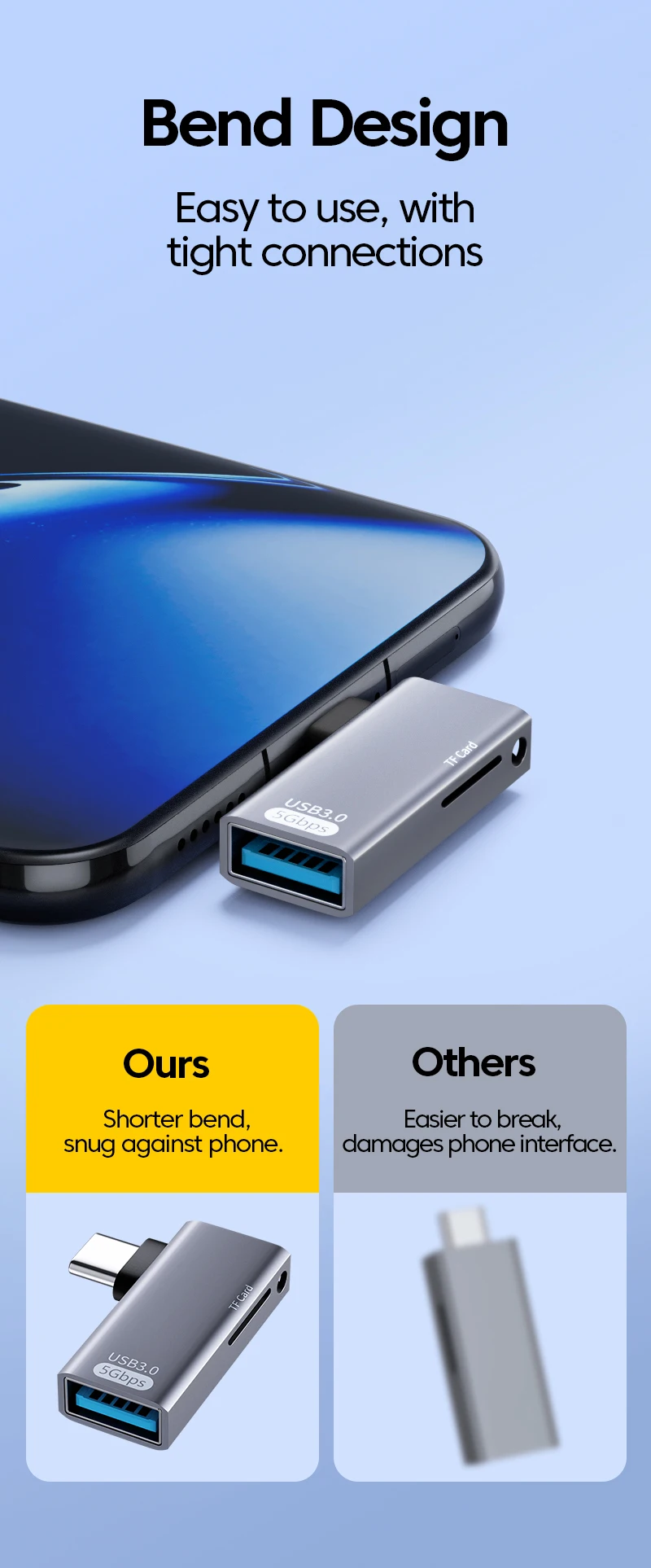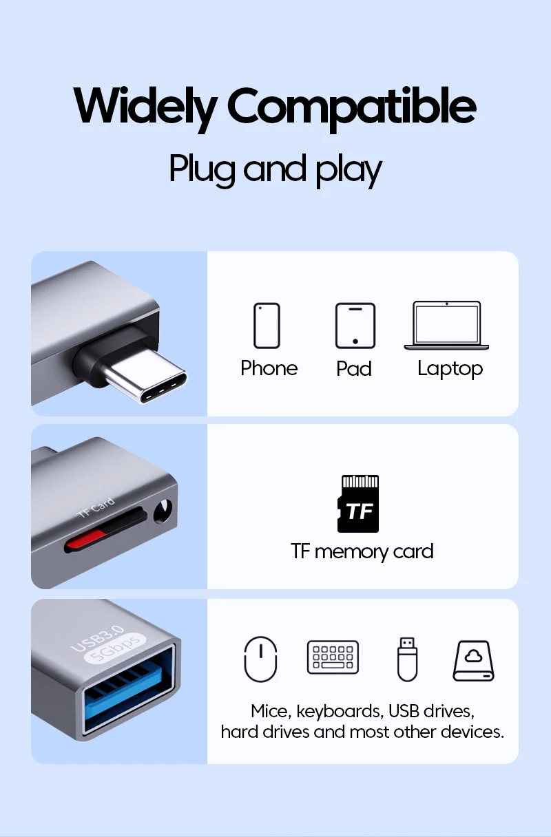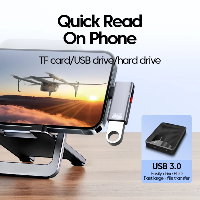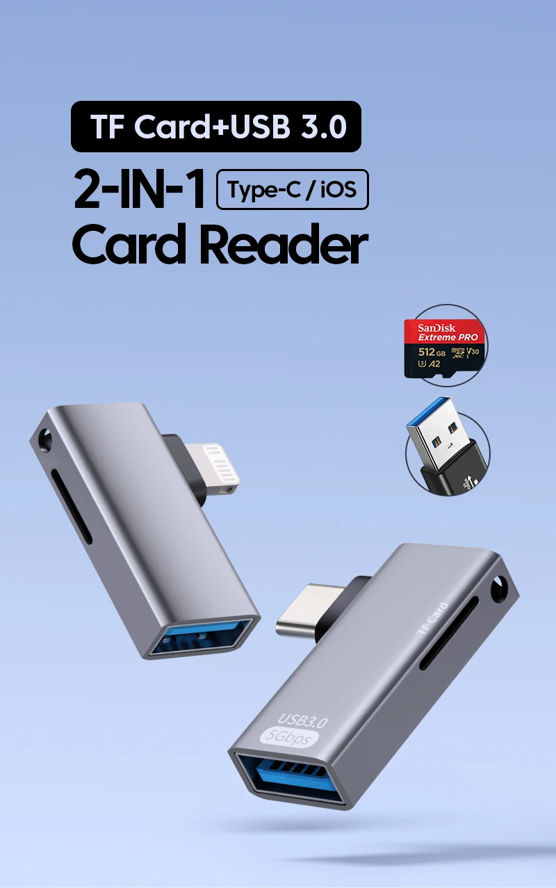 Comprar Elough 2 en 1 Adaptador de lector de tarjetas TF Unidades flash USB Discos duros Convertidores USB para puertos iphone tipo C Teléfono móvil
