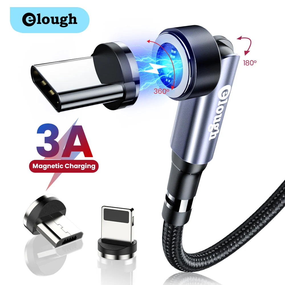 Comprar Elough 540 Cable magnético giratorio 3A Cable Micro USB tipo C de carga rápida para iPhone Xiaomi cargador magnético Cable USB de datos de teléfono