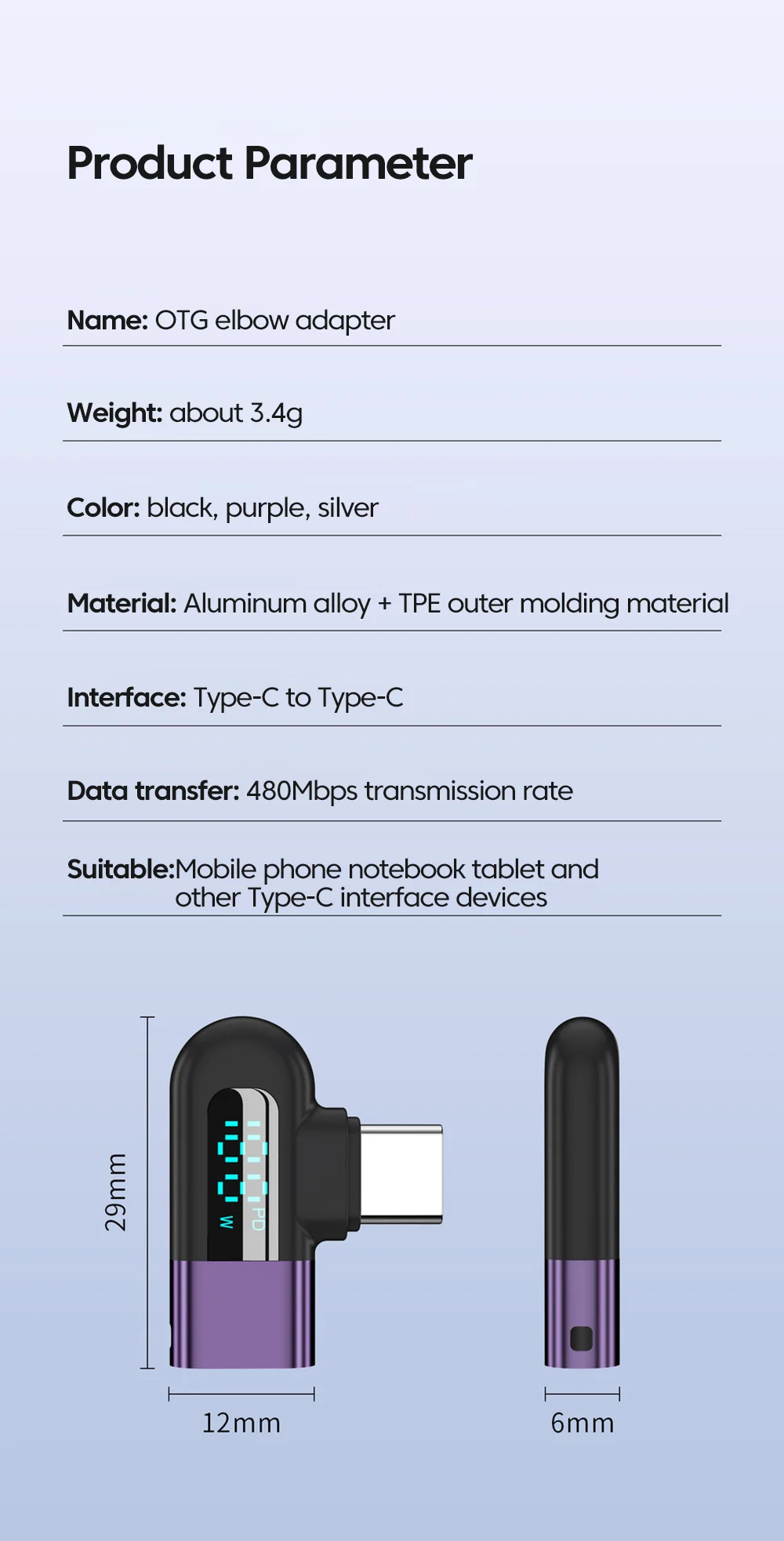 Nombre: Adaptador de codo OTG
