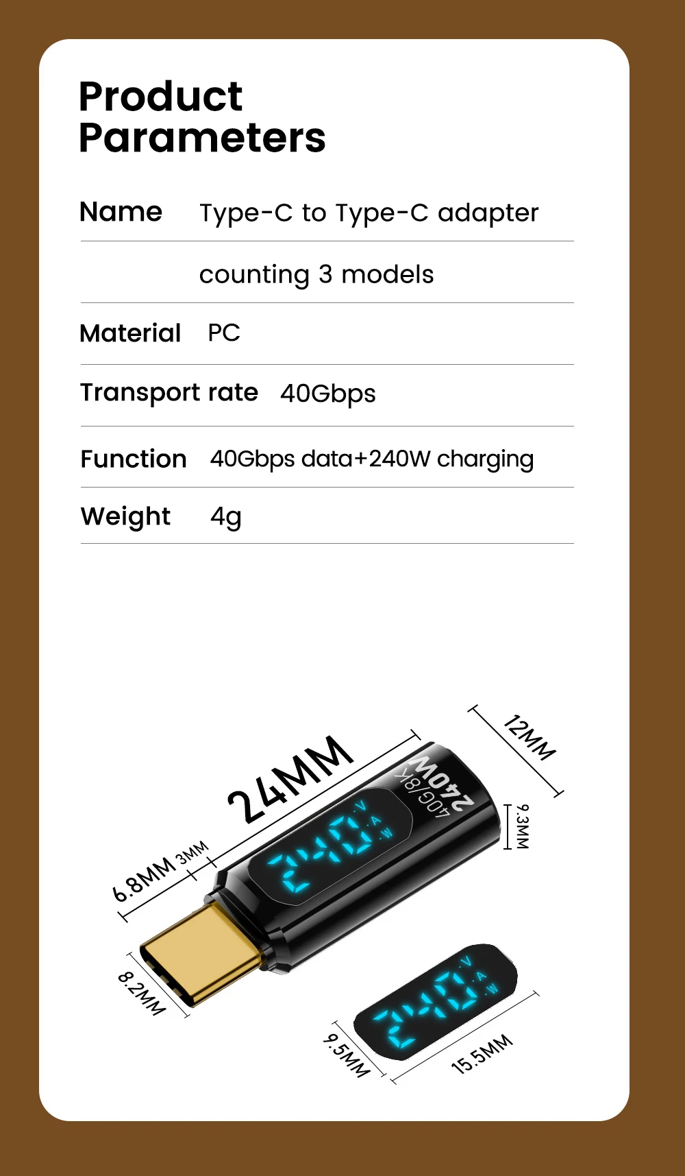 Type-C to Type-C adapter counting 3 models
