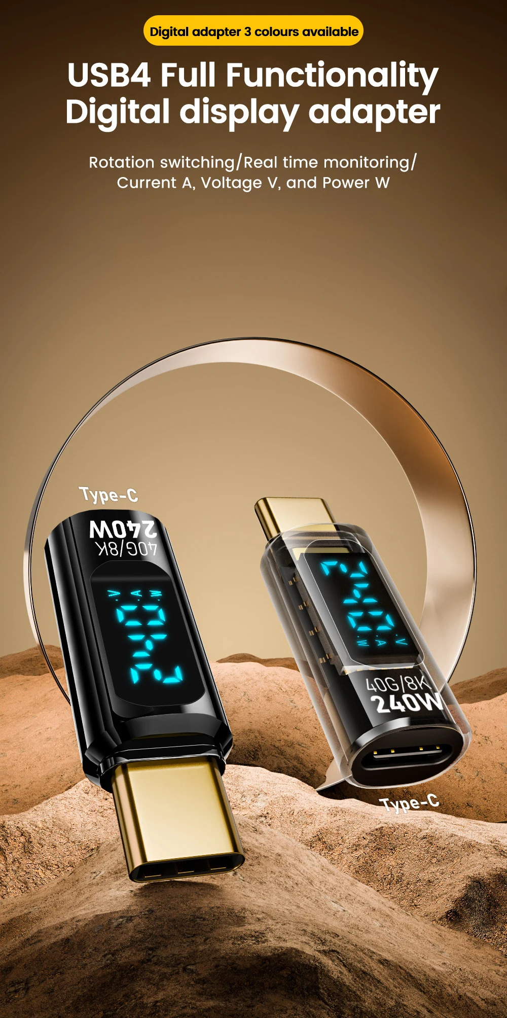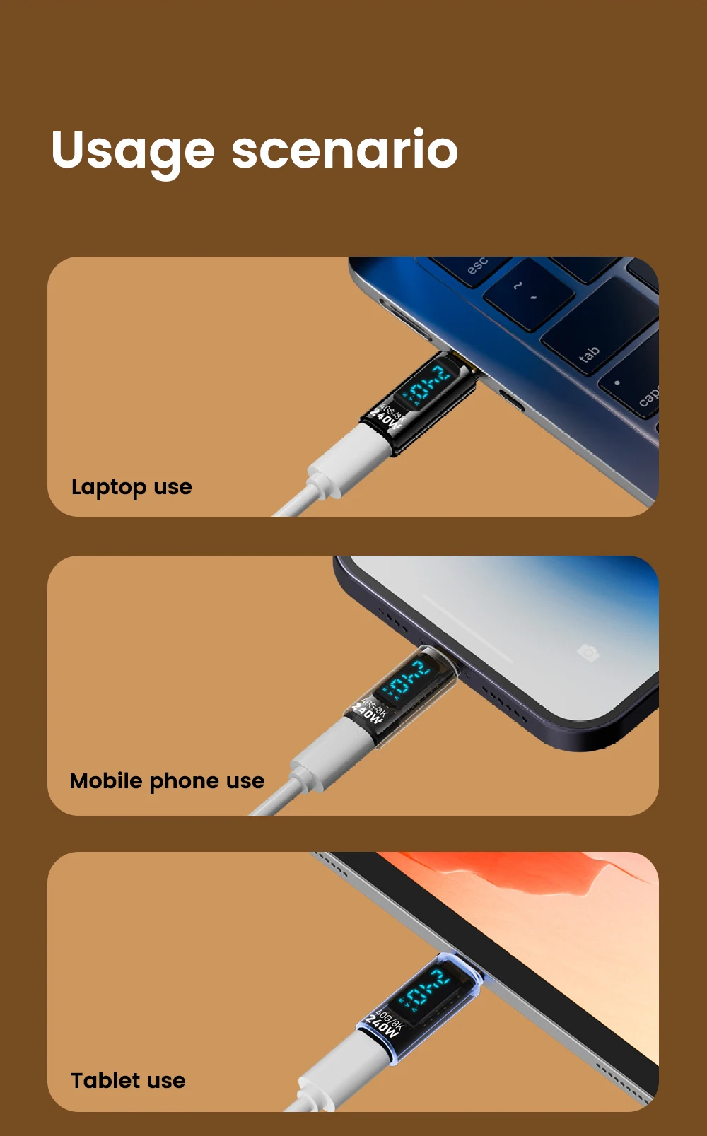 Comprar Elough Adaptador 240W 5A USB4 Pantalla Digital Tipo C a Tipo C OTG 8K Transferencia de Vídeo para iPhone 15 Samsung Tablet Laptop