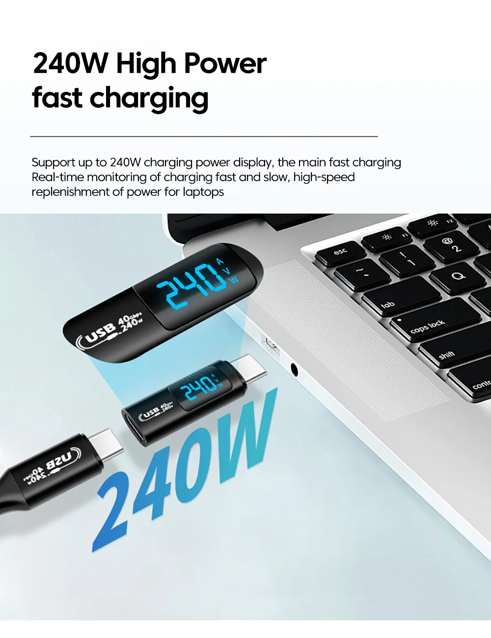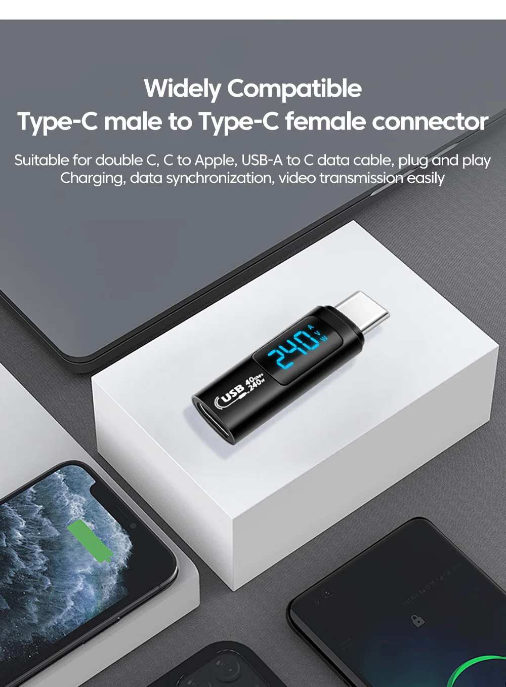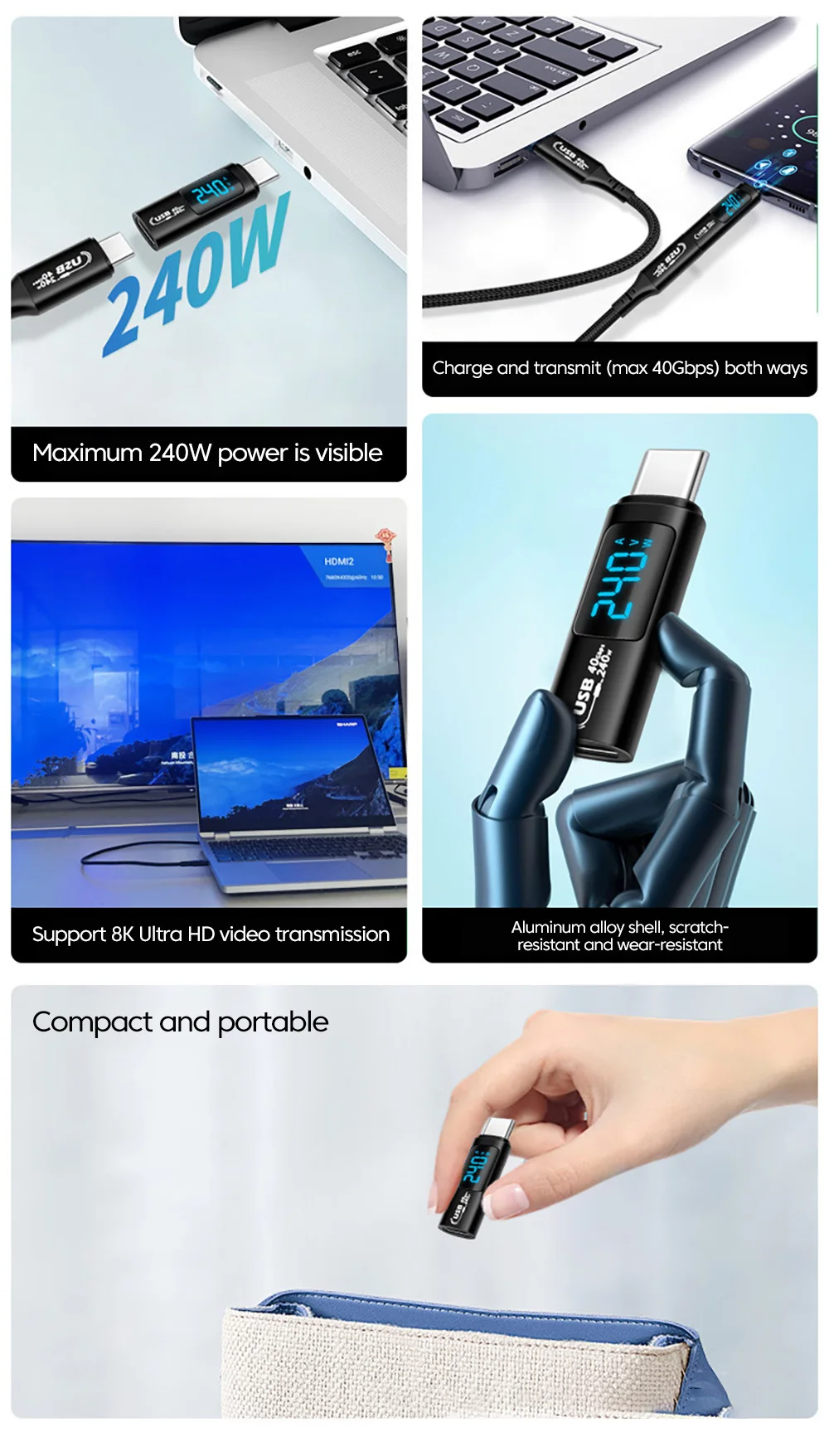 Comprar Elough-Adaptador de pantalla Digital para iPhone 15, Samsung, tableta y portátil, 240W, 5A, USB 4,0, USB 2,0, tipo C a tipo C, transferencia de vídeo OTG