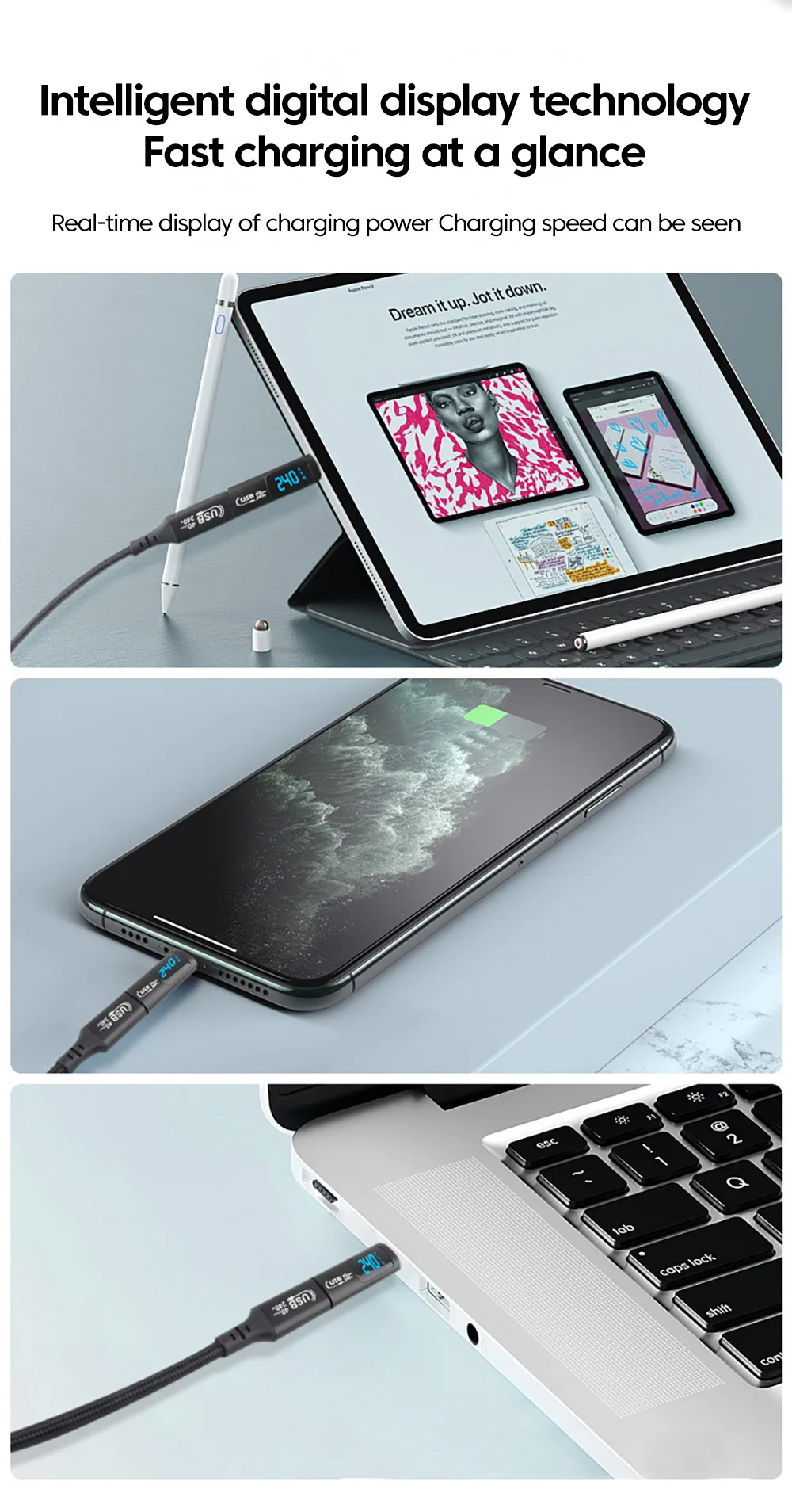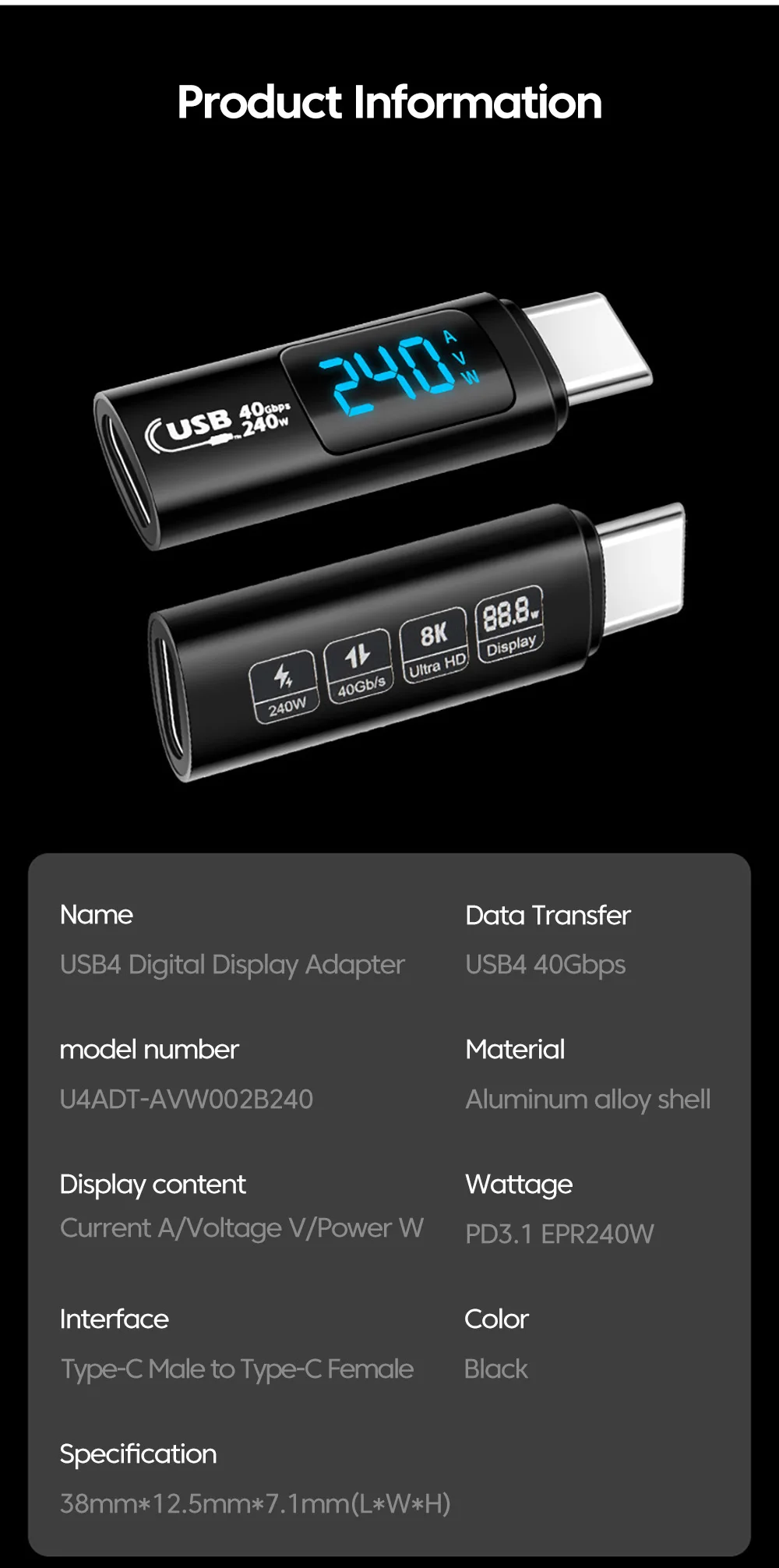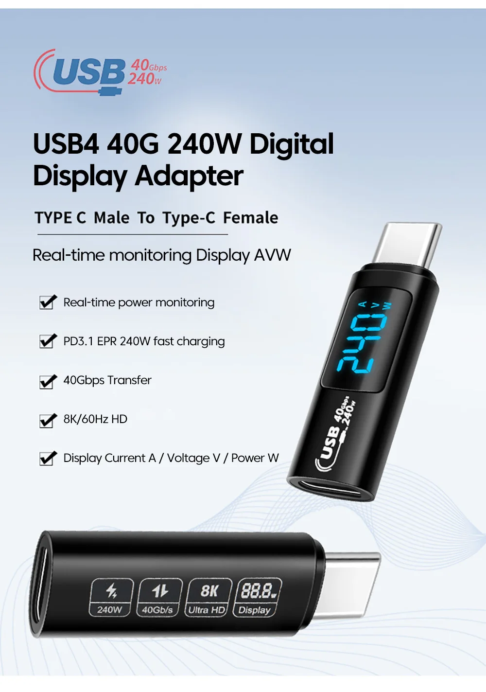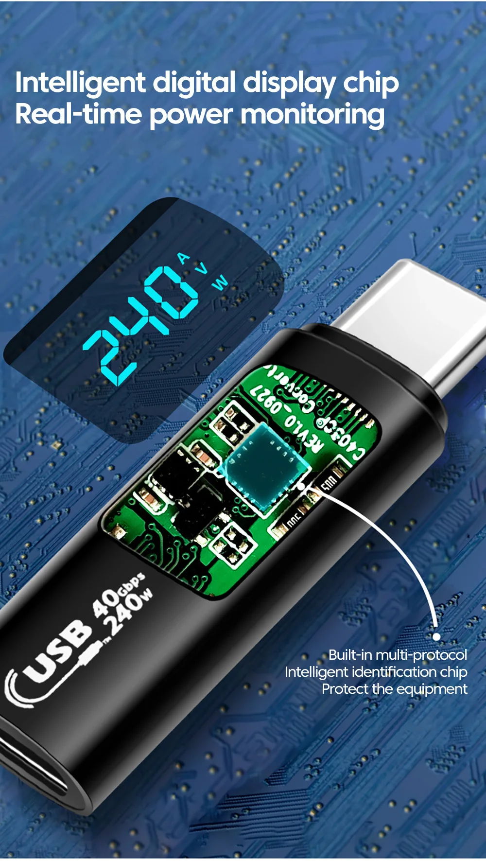 Comprar Elough-Adaptador de pantalla Digital para iPhone 15, Samsung, tableta y portátil, 240W, 5A, USB 4,0, USB 2,0, tipo C a tipo C, transferencia de vídeo OTG