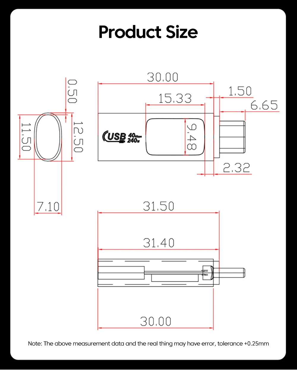 Especificación: 38mm * 12,5mm * 7. 1mm(L * W * H)