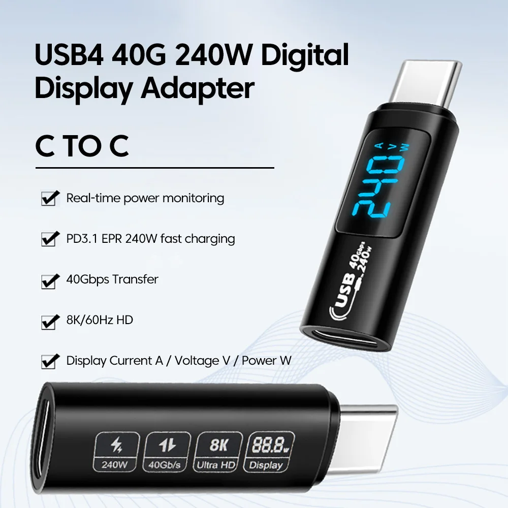 Comprar Elough-Adaptador de pantalla Digital para iPhone 15, Samsung, tableta y portátil, 240W, 5A, USB 4,0, USB 2,0, tipo C a tipo C, transferencia de vídeo OTG