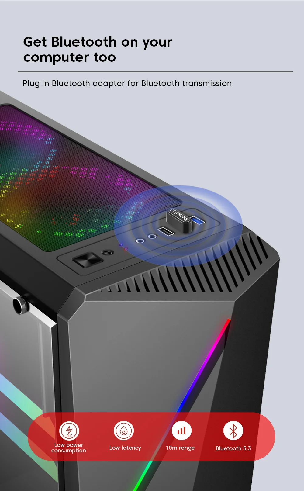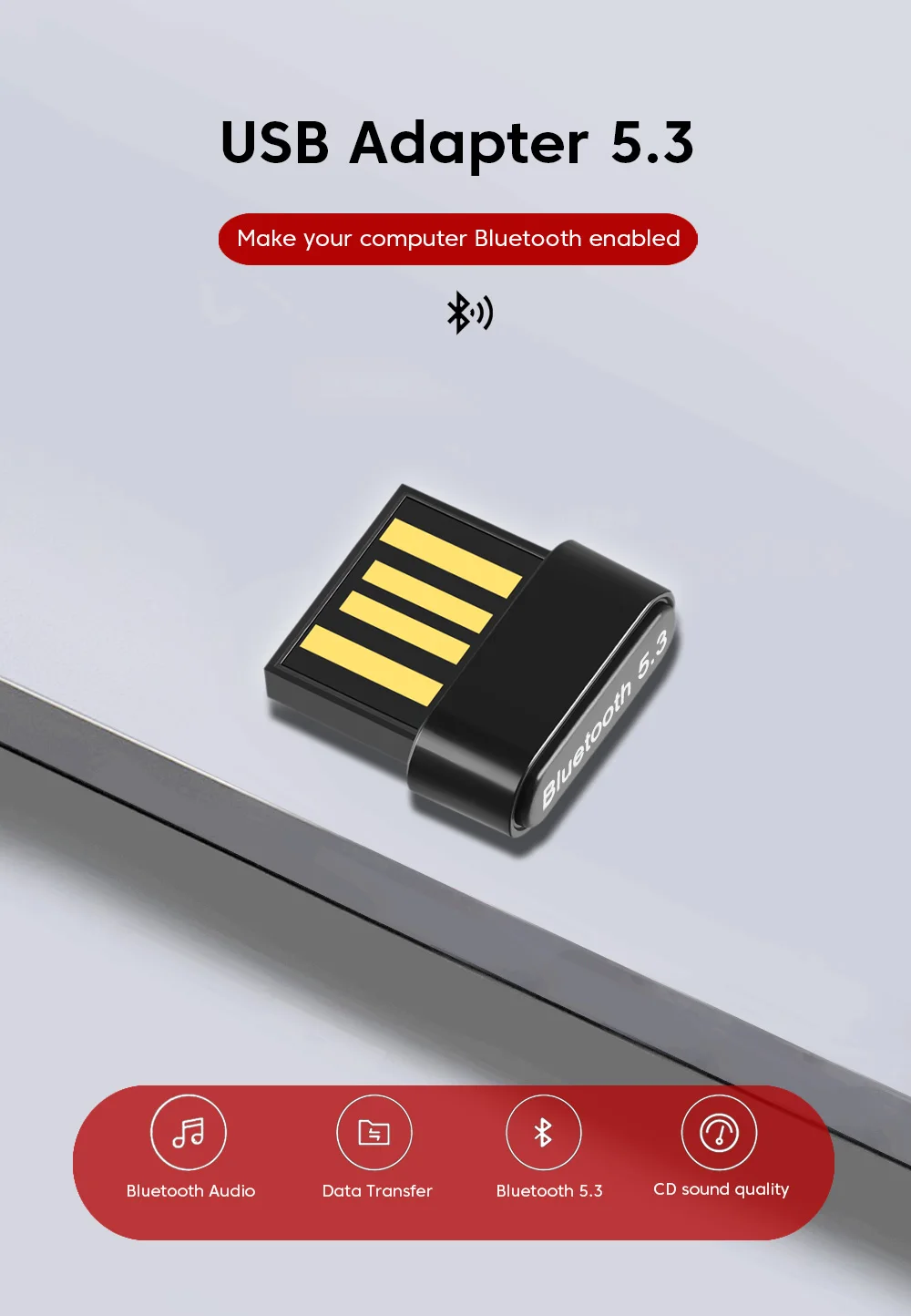 Comprar Elough-Adaptador USB Bluetooth 5,3/5,1, receptor BT5.0 Dongle para PC, ratón inalámbrico, auriculares, altavoz, portátil