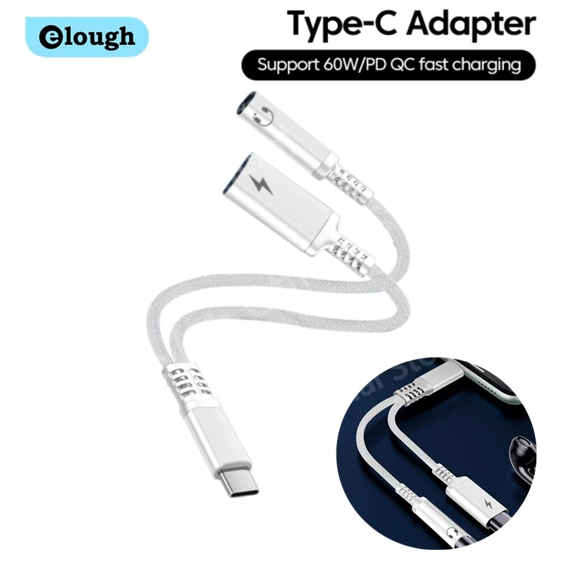 Comprar Elough-Adaptador Usb tipo C a Jack de 3,5mm para iPhone 15 Pro, convertidor de Cable auxiliar macho a hembra, divisor de Audio, 3,5