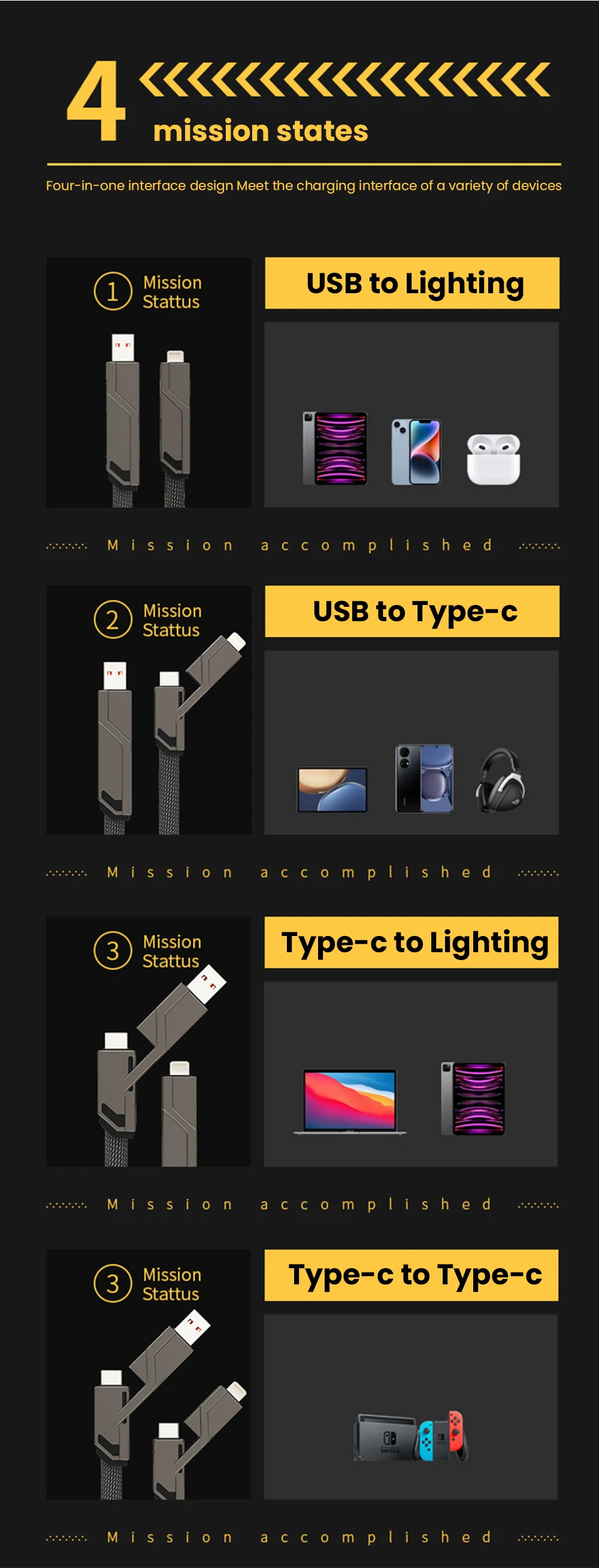 Comprar Elough-Cable de carga rápida 4 en 1 para Huawei PD, Cargador USB tipo C, 100W