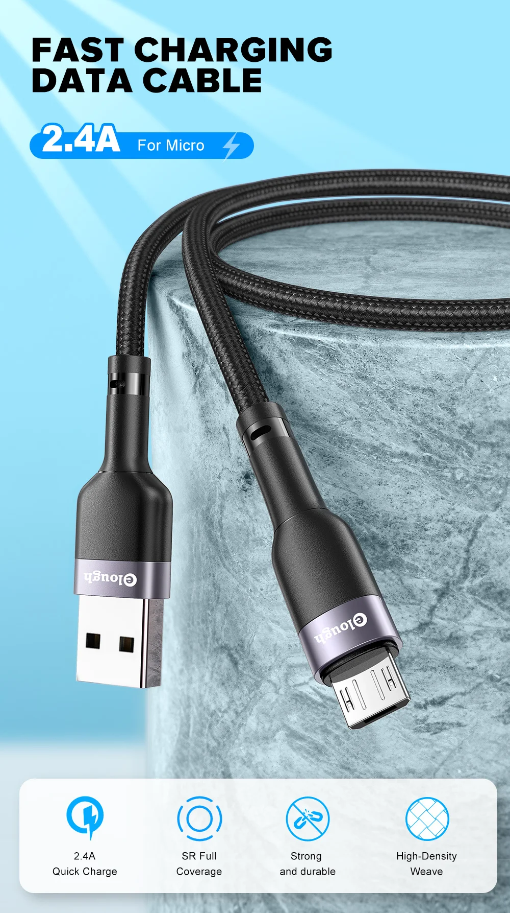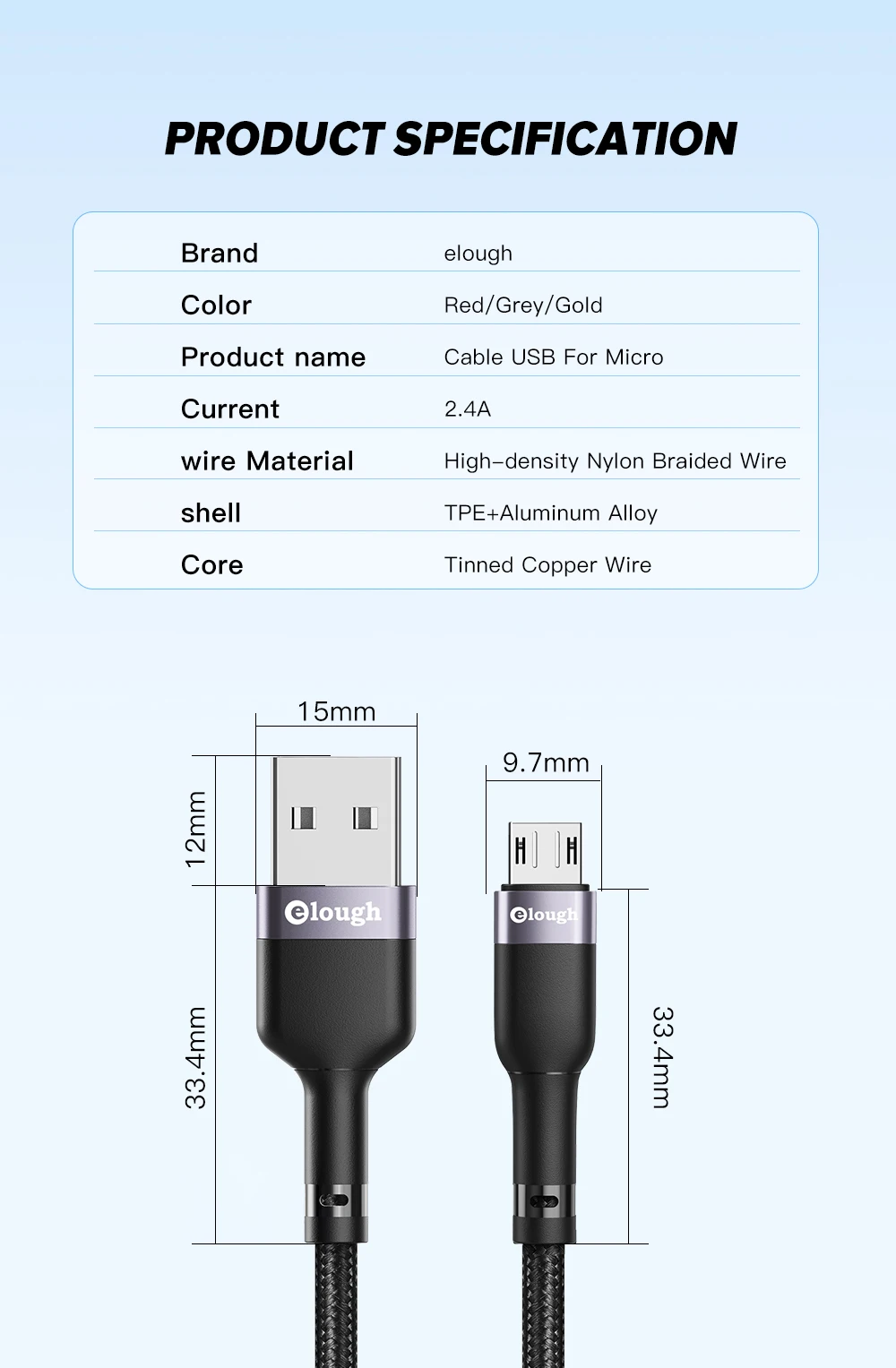 Comprar Elough-Cable Micro USB de carga rápida para móvil, Cable de datos para Xiaomi Redmi, Samsung, Android