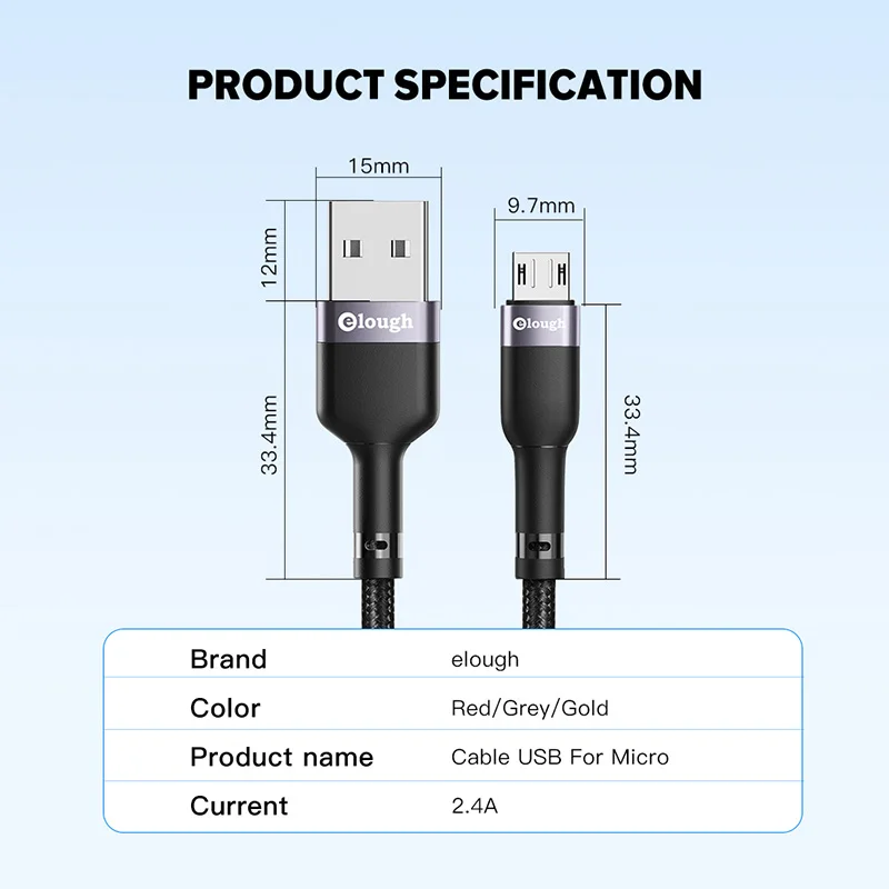 Comprar Elough-Cable Micro USB de carga rápida para móvil, Cable de datos para Xiaomi Redmi, Samsung, Android