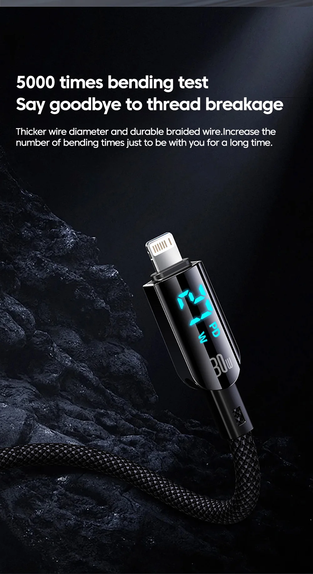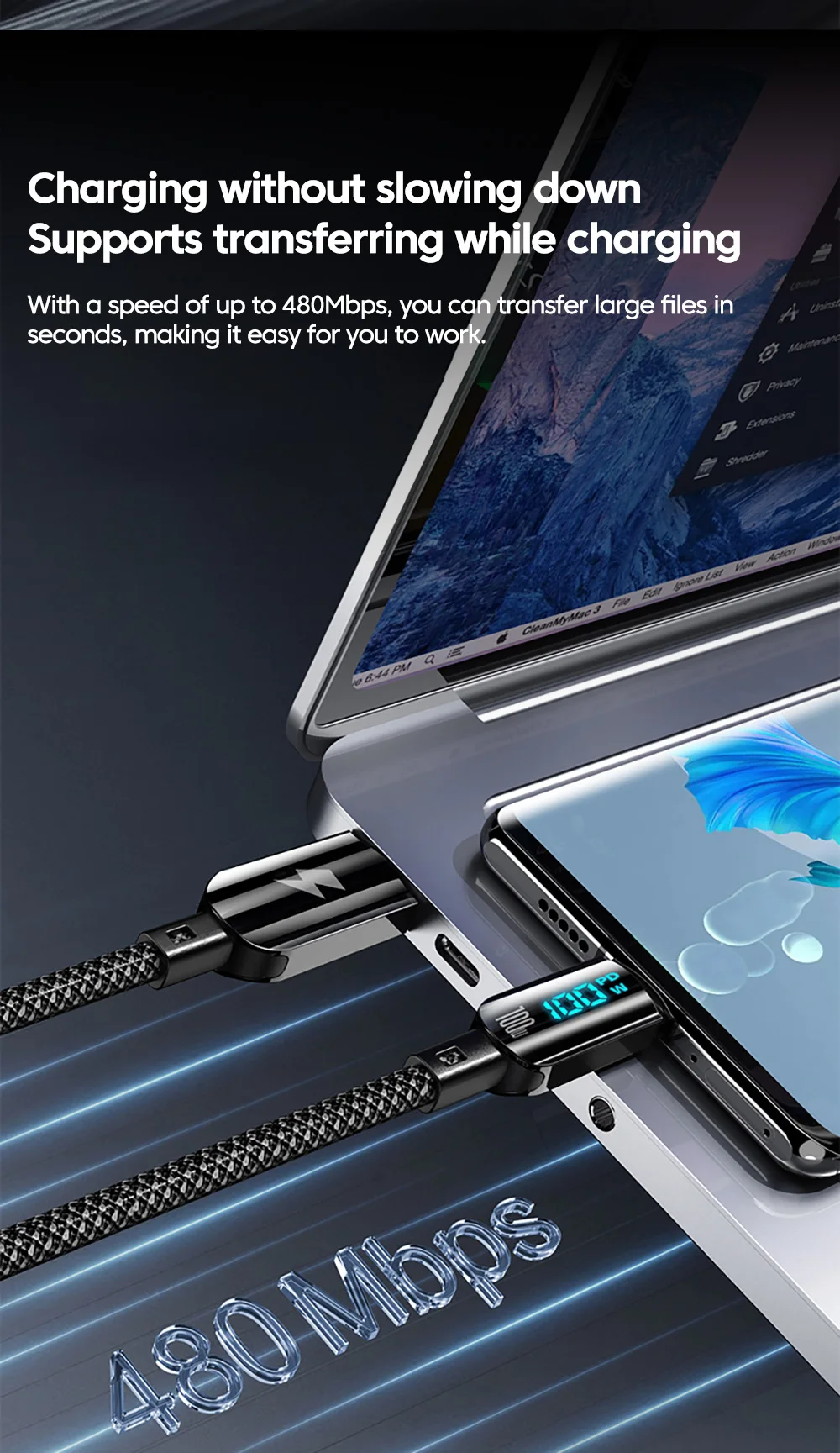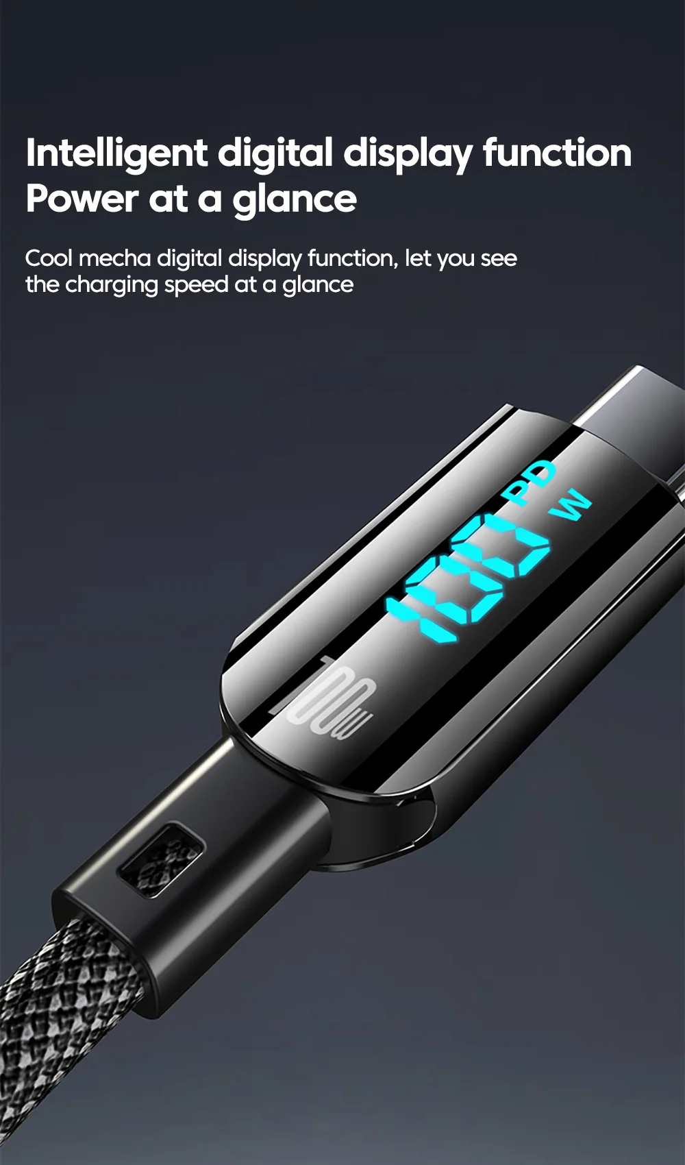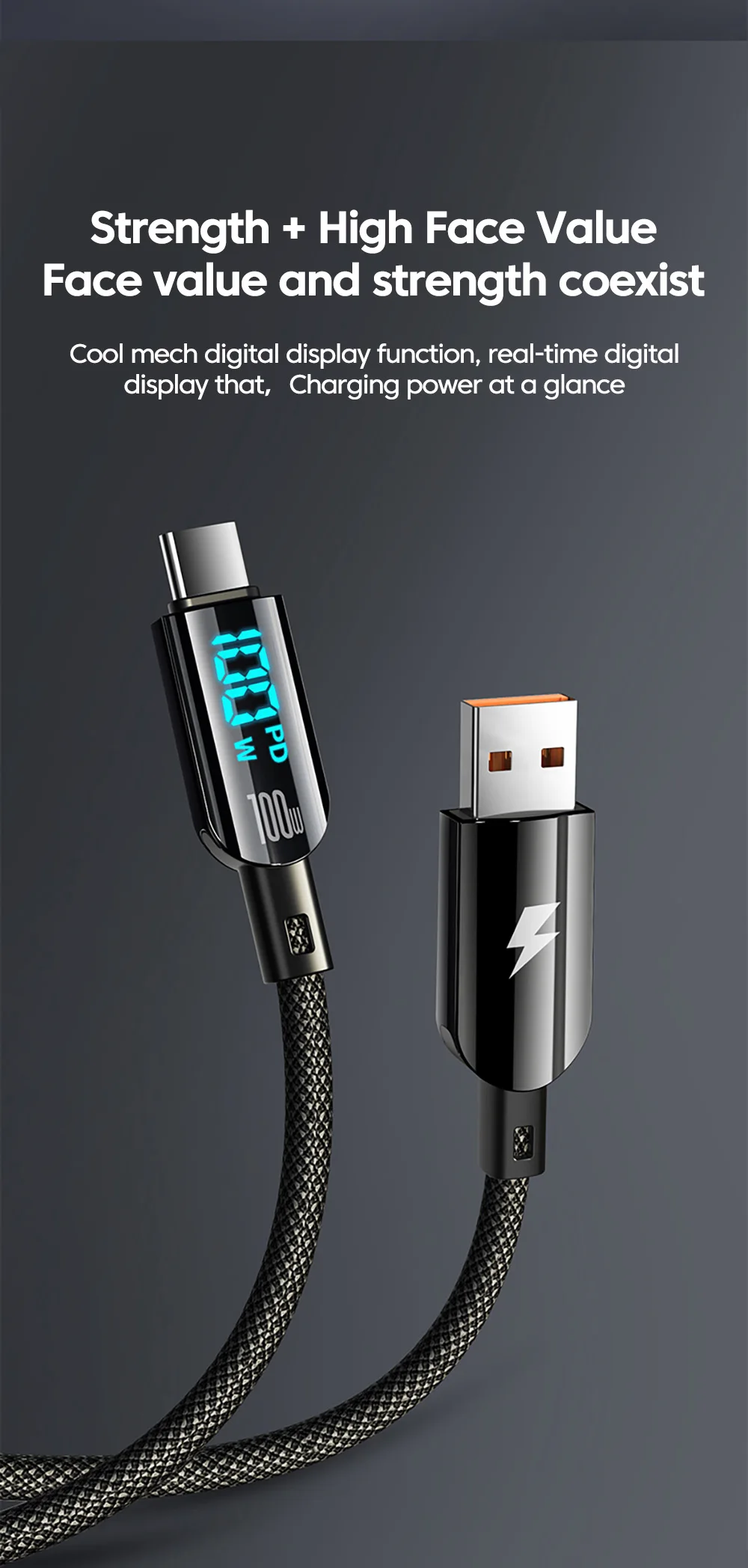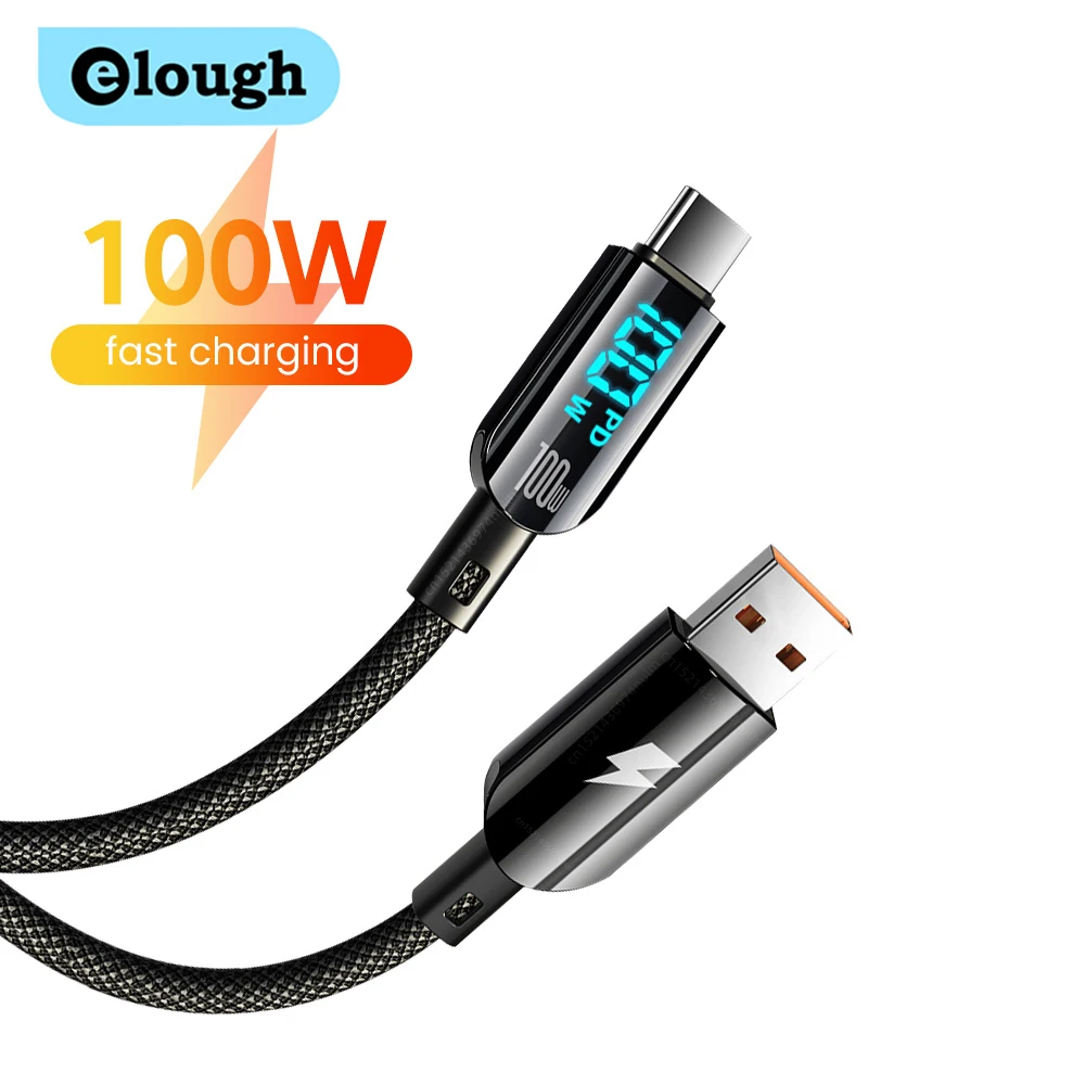 Elough-Cable tipo C de 100W para iPhone 15, dispositivo de carga rápida con pantalla Digital, USB C a USB C, Cable de datos para Samsung, Huawei y Xiaomi