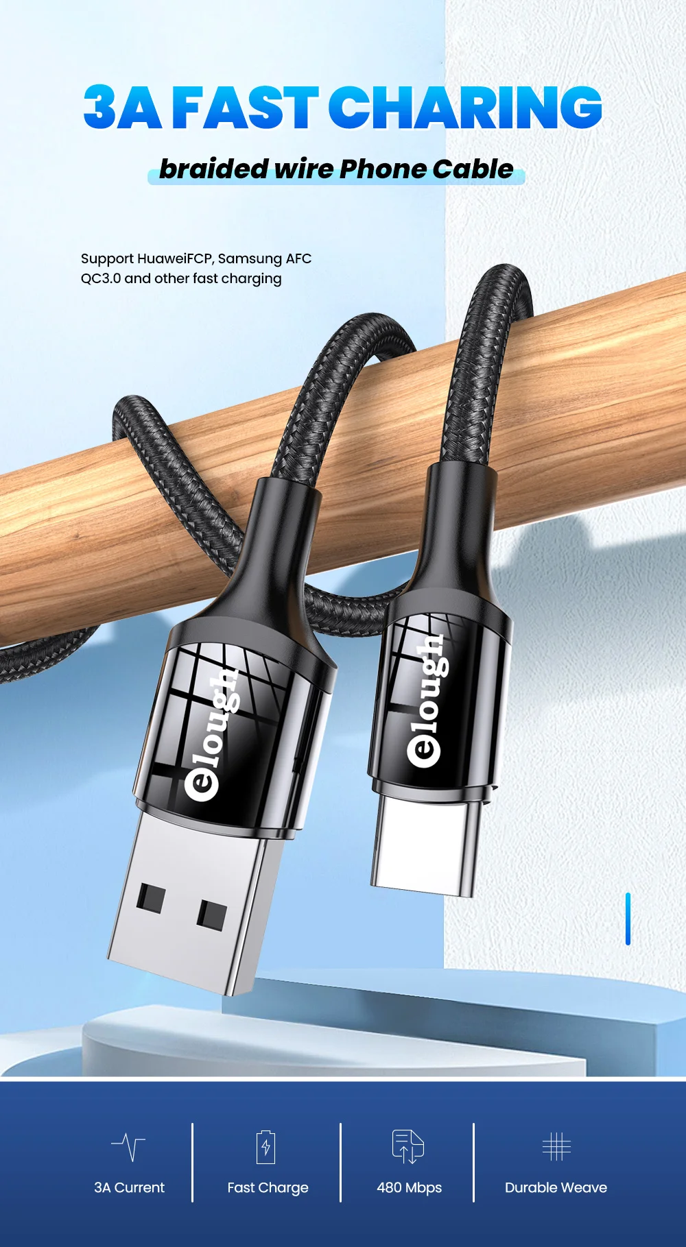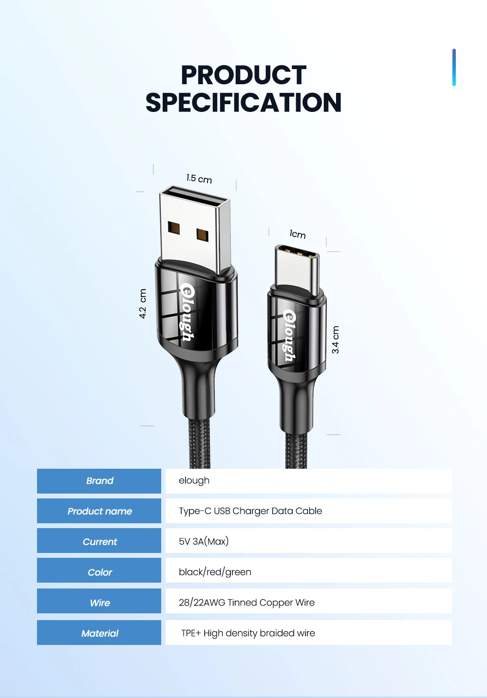 Cargador USB C, Cable tipo C, USB 3,0, Cable tipo C