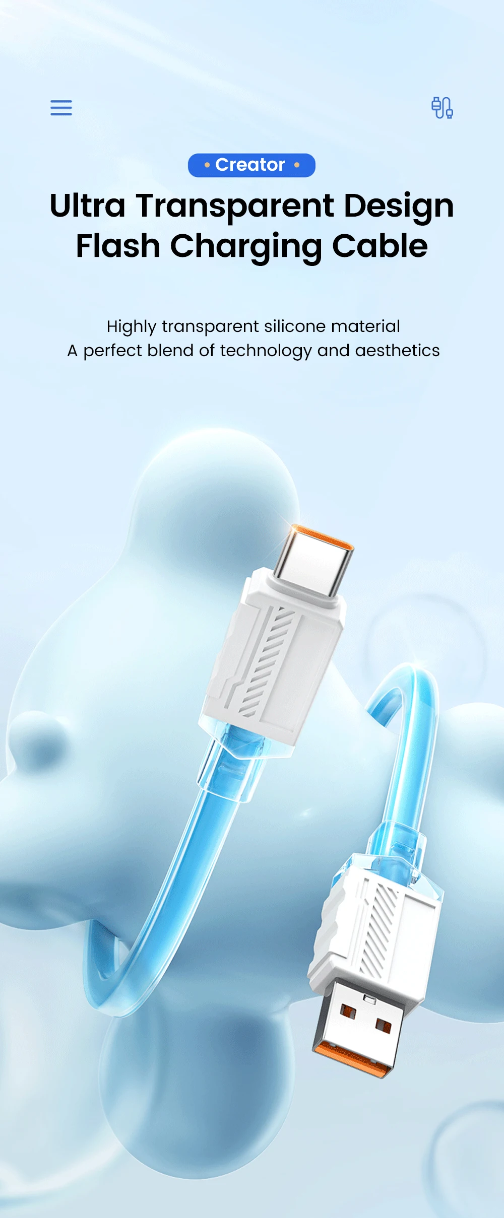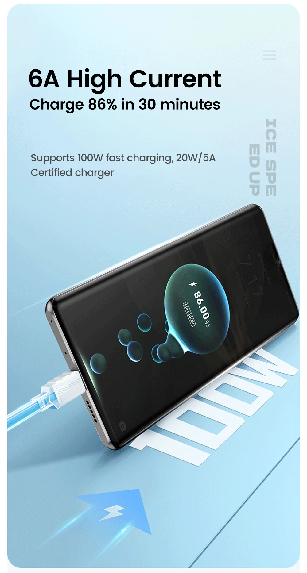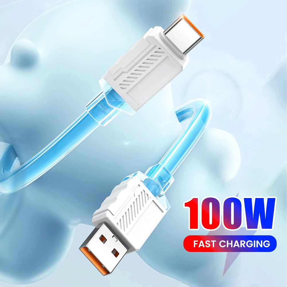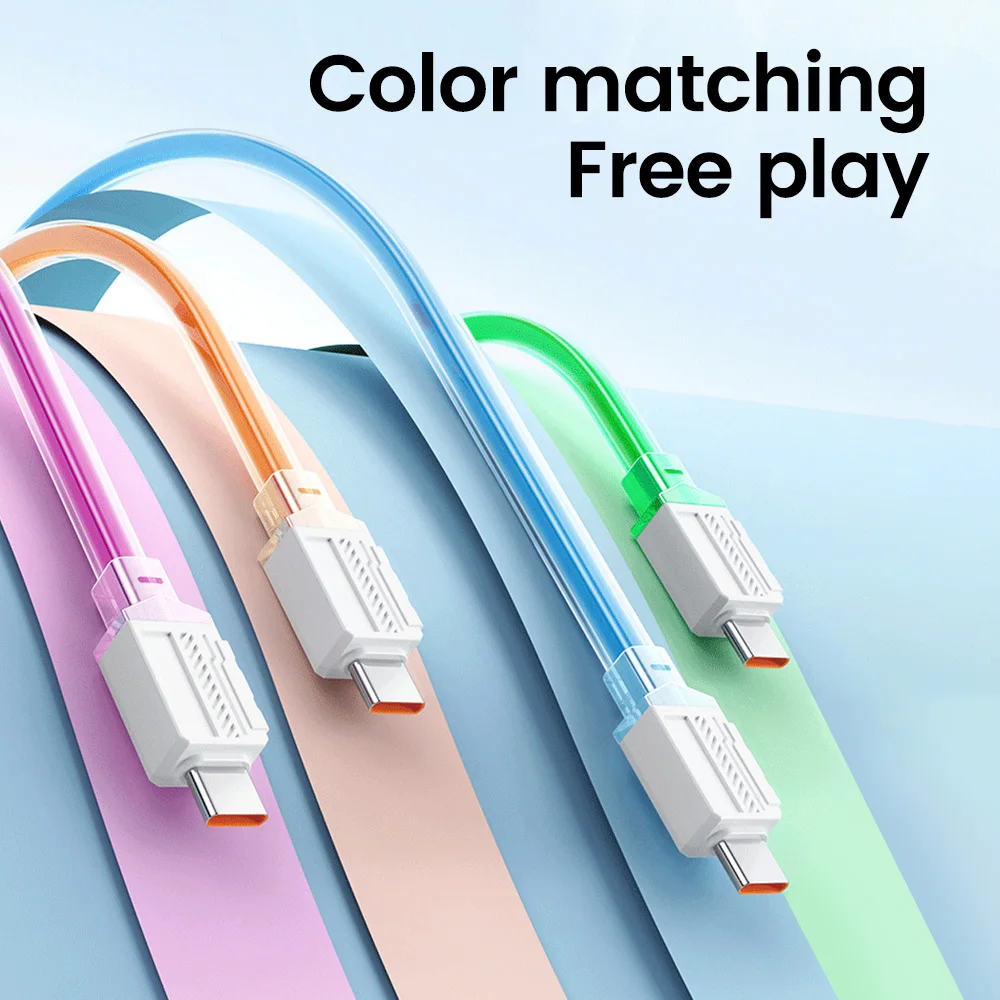 Elough-Cable USB tipo C de carga súper rápida, adhesivo suave de Color líquido, Cable de datos tipo C, Jelly Square, adecuado para Xiaomi y Huawei, 100W