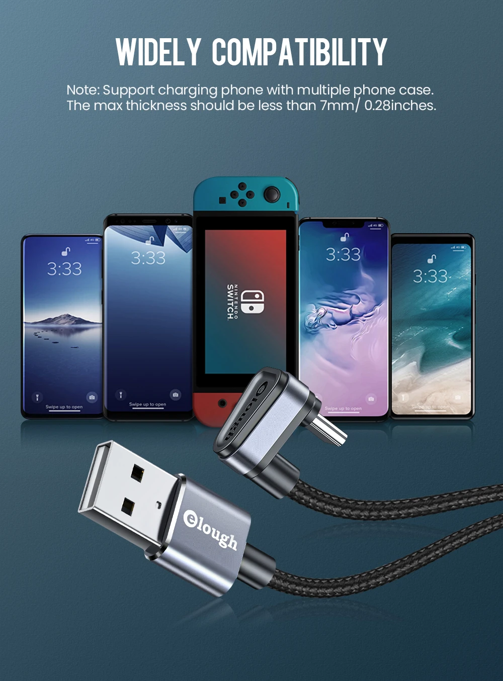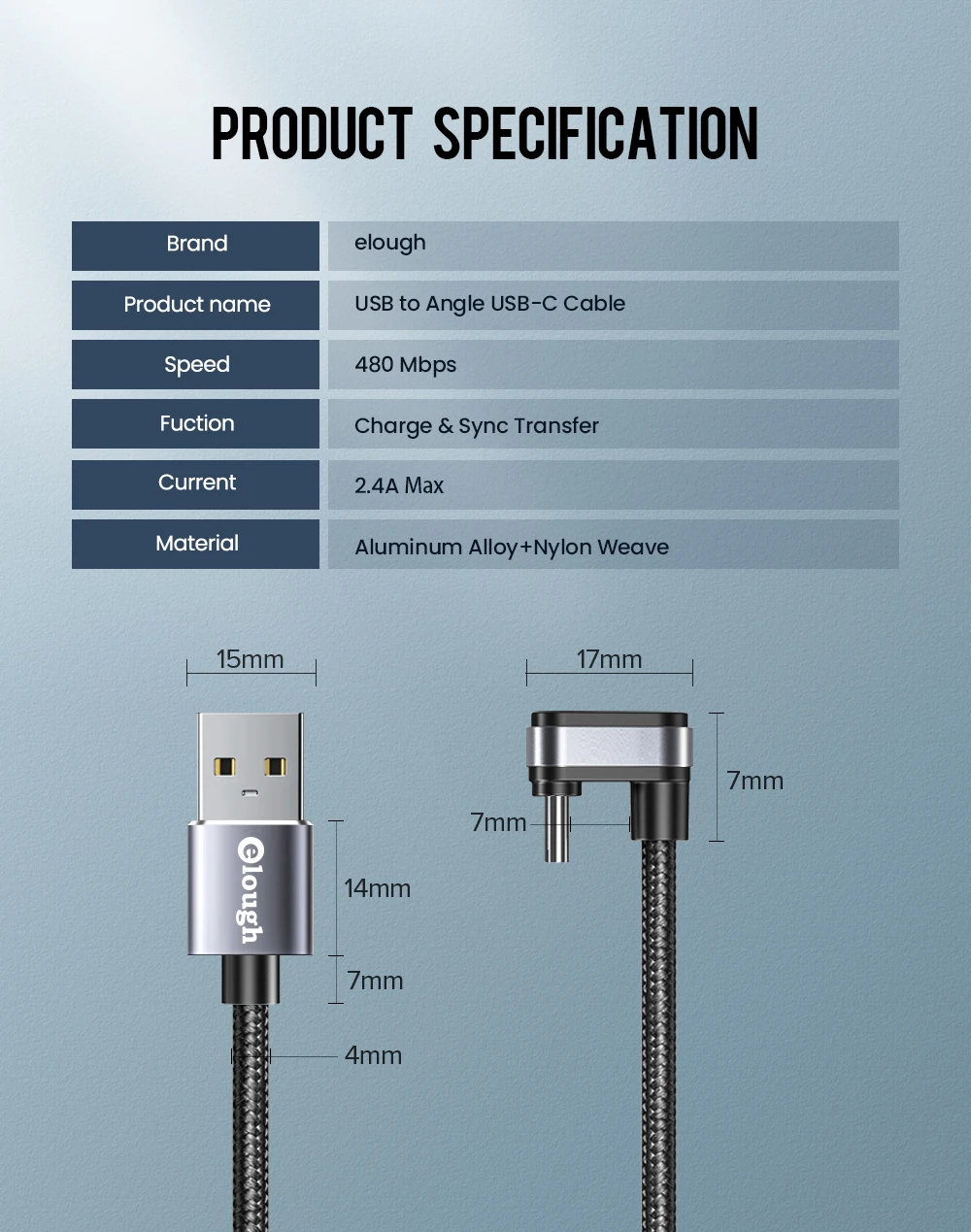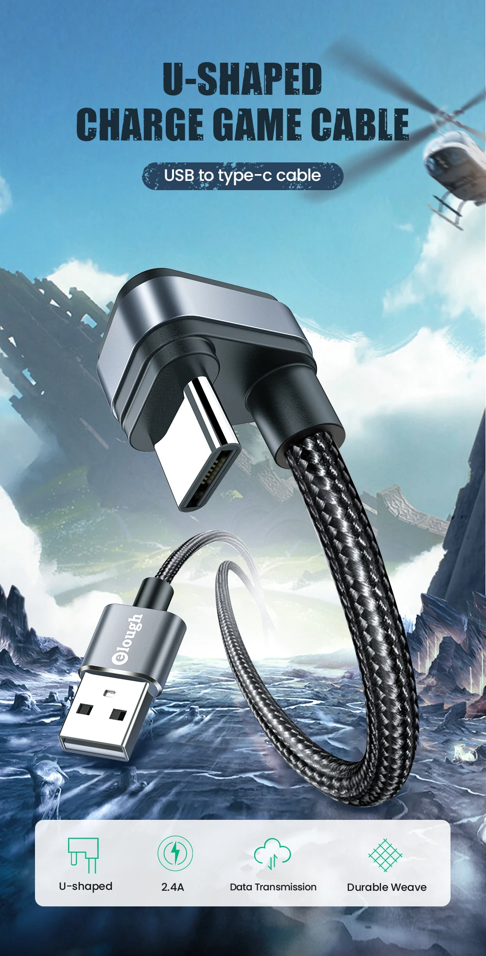 Comprar Elough-Cable USB tipo C para móvil, Cable de carga de 90 grados, juegos de datos, para Samsung S9, S10, Xiaomi Redmi, Huawei Note 7