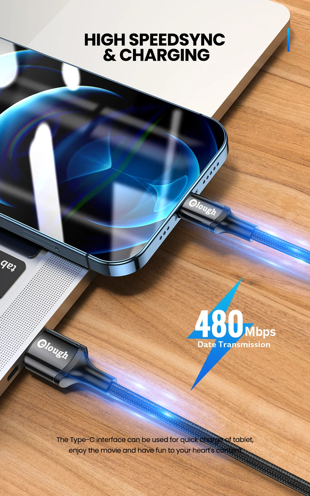 Elough-Cable USB tipo C para móvil, Cable de carga rápida 3A, para Xiaomi, Samsung S20, S21, 3m