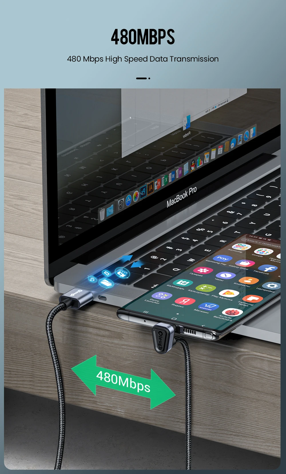 Comprar Elough-Cable USB tipo C para móvil, Cable de datos de carga rápida de 180 grados, para Samsung, Xiaomi mi Redmi, 2.4A