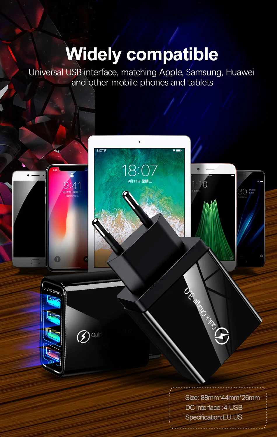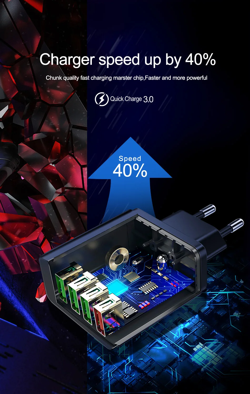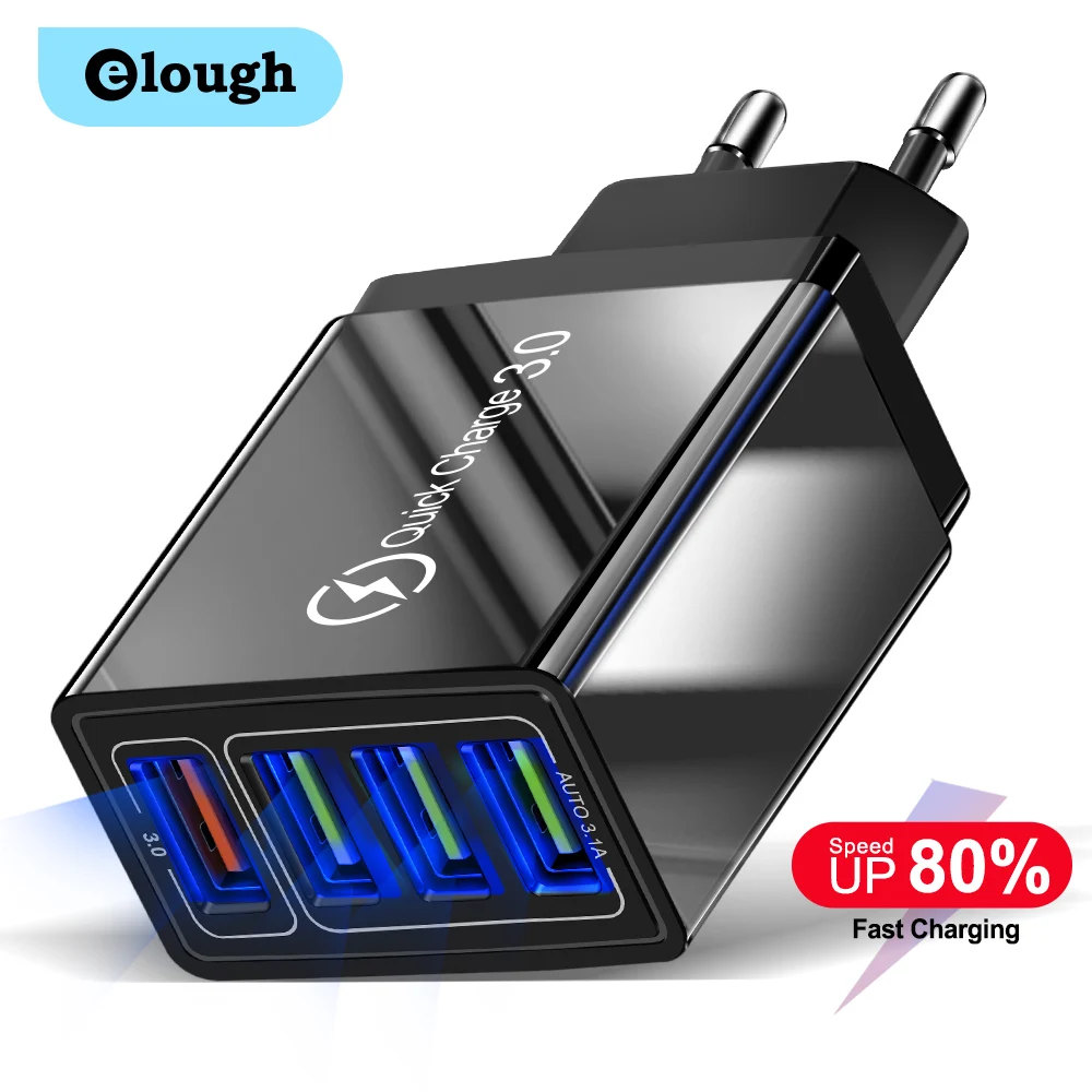 Comprar Elough-cargador USB 3,0 de carga rápida para teléfono móvil, dispositivo de carga de pared de 30W para iPhone 7, x, Samsung S10, S9, Xiaomi, Huawei, enchufe europeo, estadounidense y británico