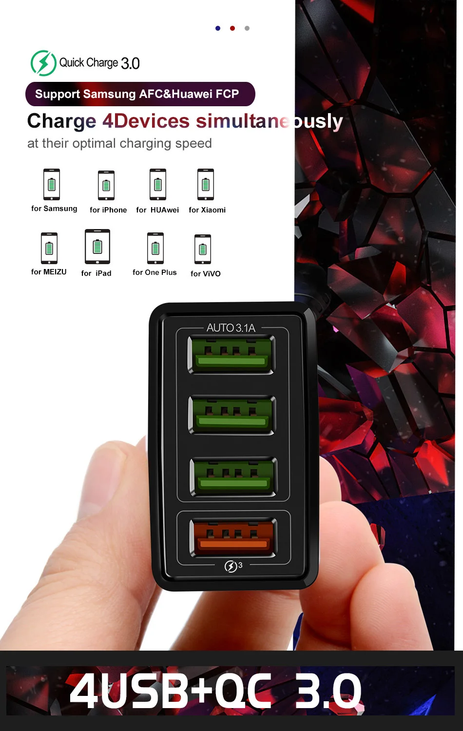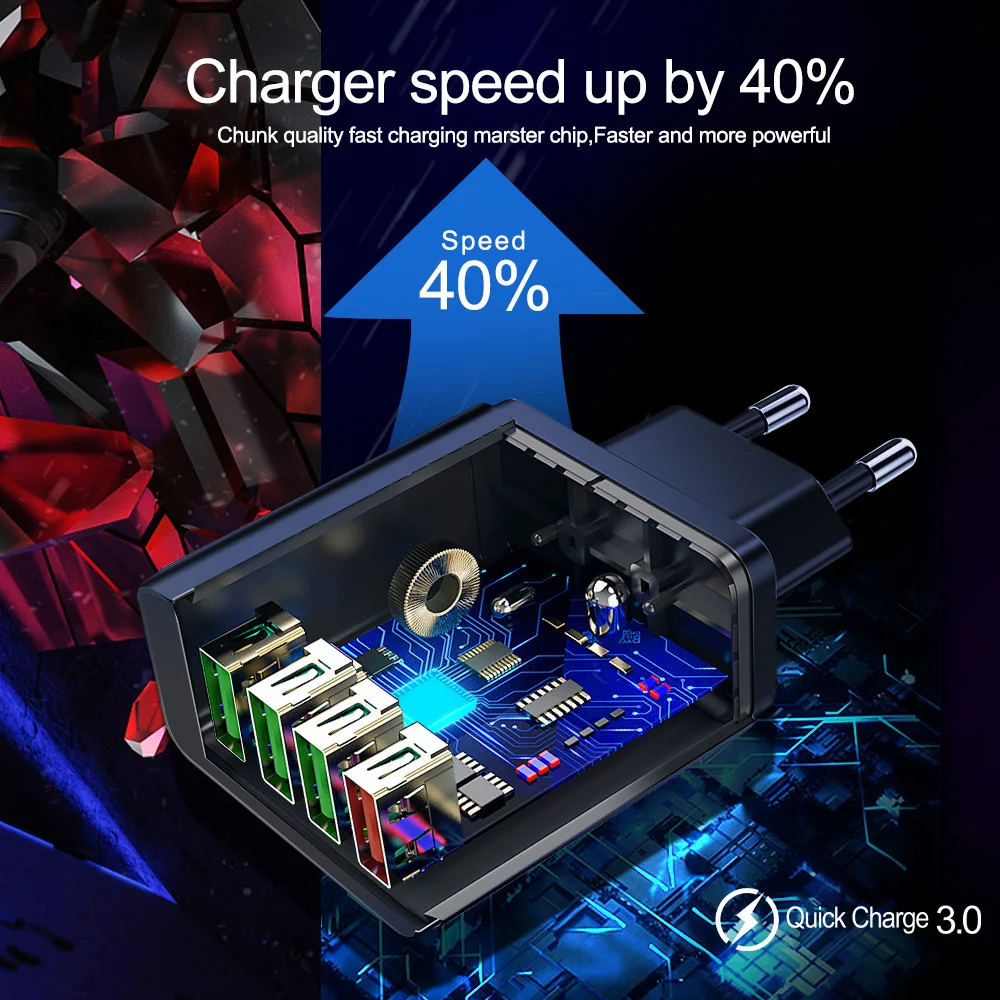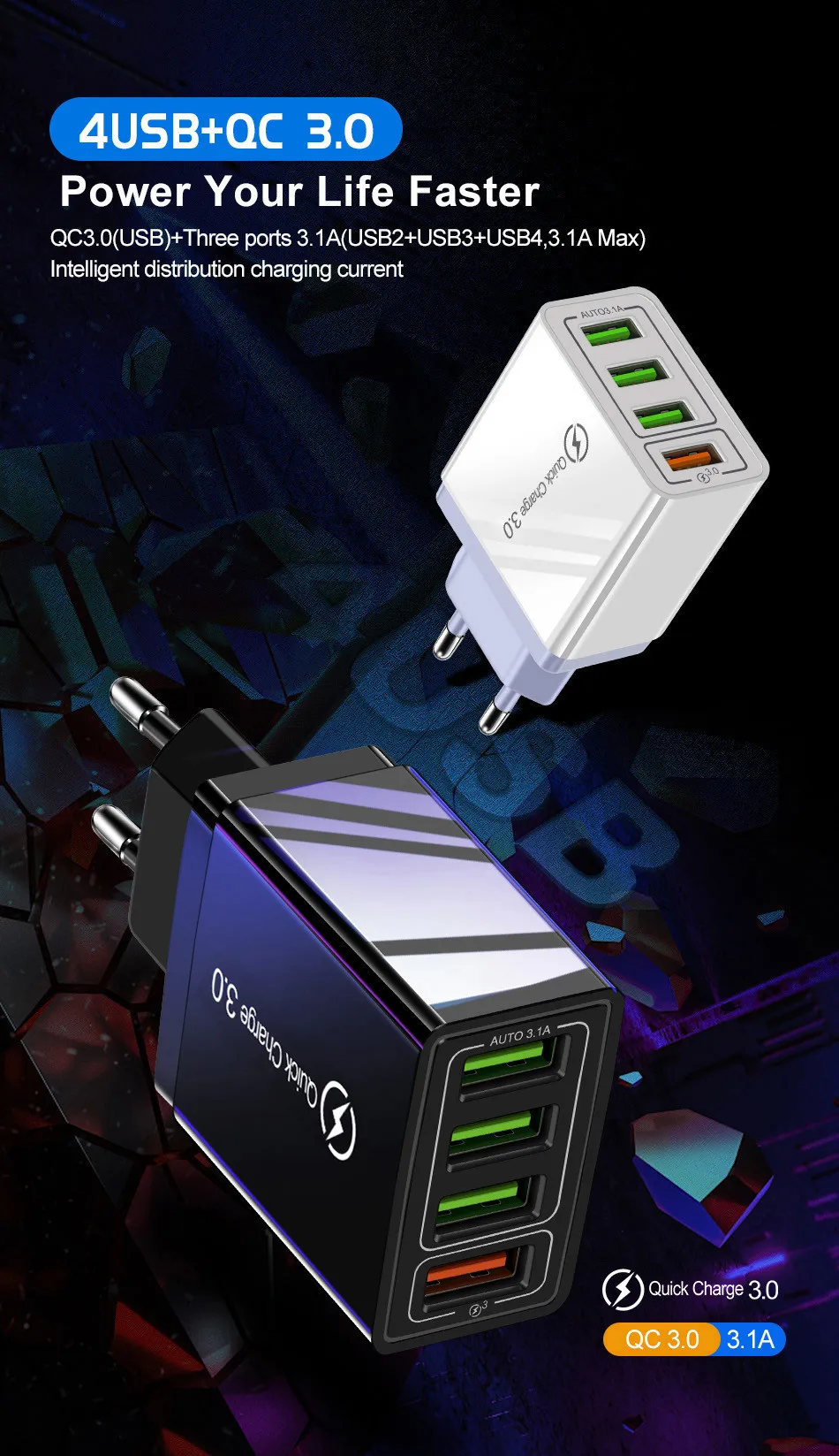 Comprar Elough-cargador USB 3,0 de carga rápida para teléfono móvil, dispositivo de carga de pared de 30W para iPhone 7, x, Samsung S10, S9, Xiaomi, Huawei, enchufe europeo, estadounidense y británico