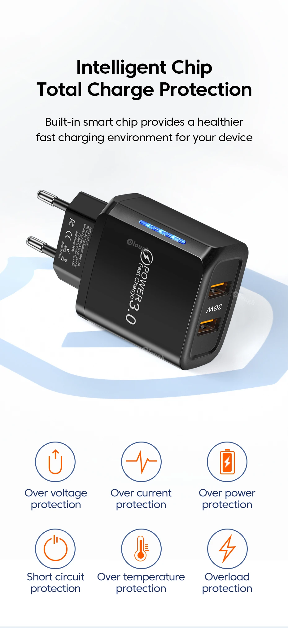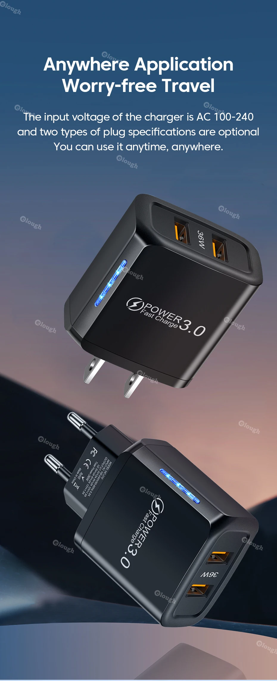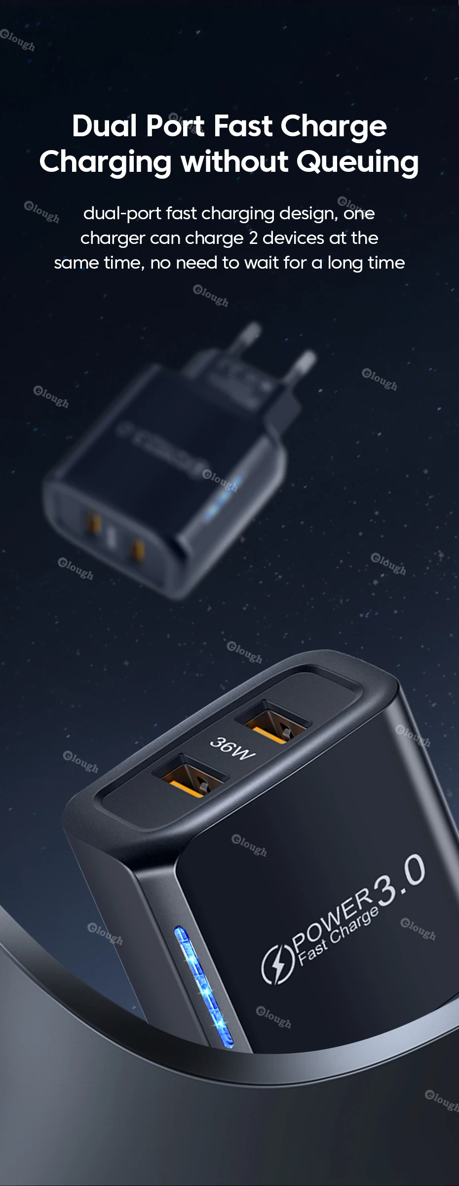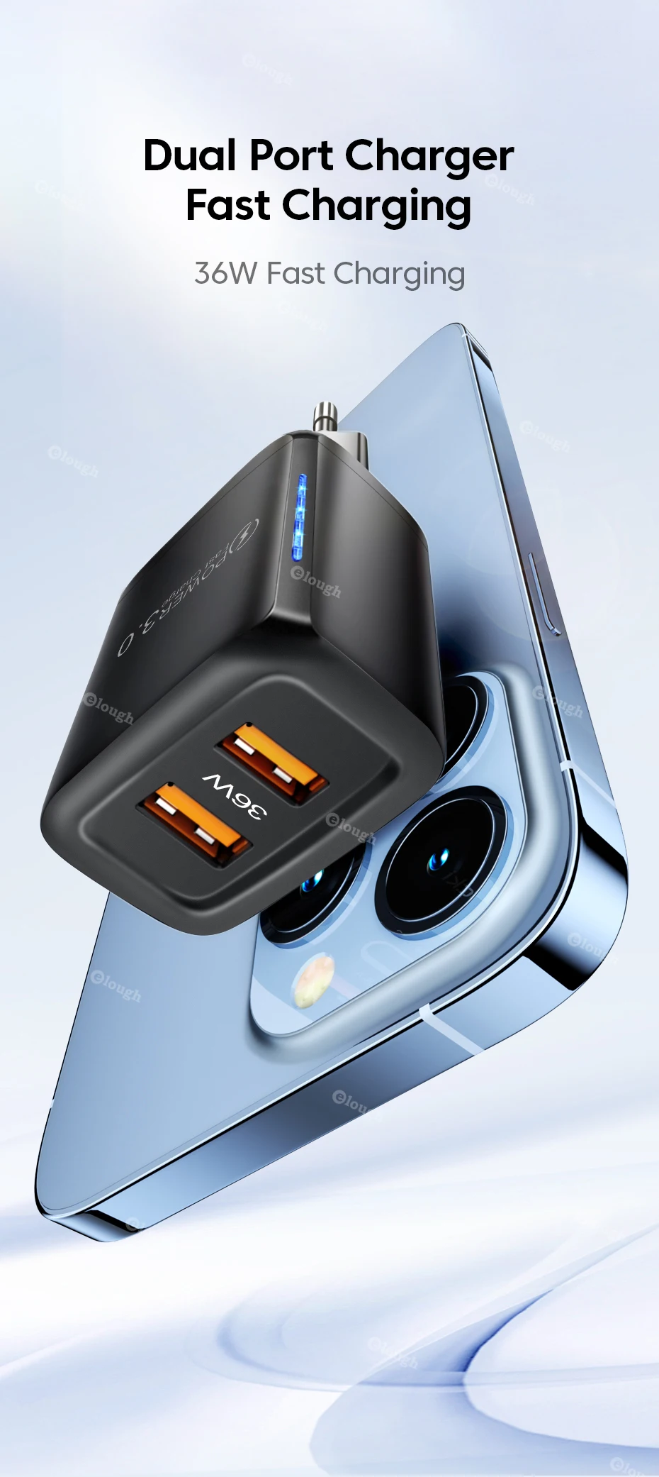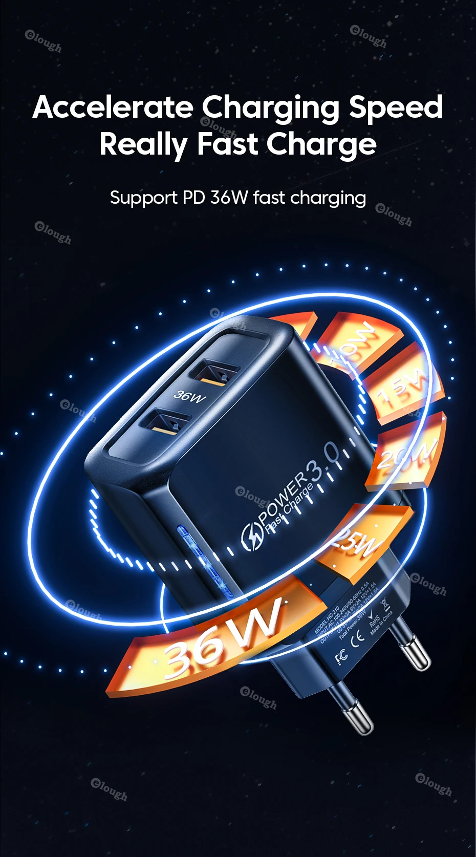 Elough-cargador USB tipo C de 36W, adaptador de carga rápida para iPhone 13 14, iPad, Xiaomi, Samsung QC PD 3,0
