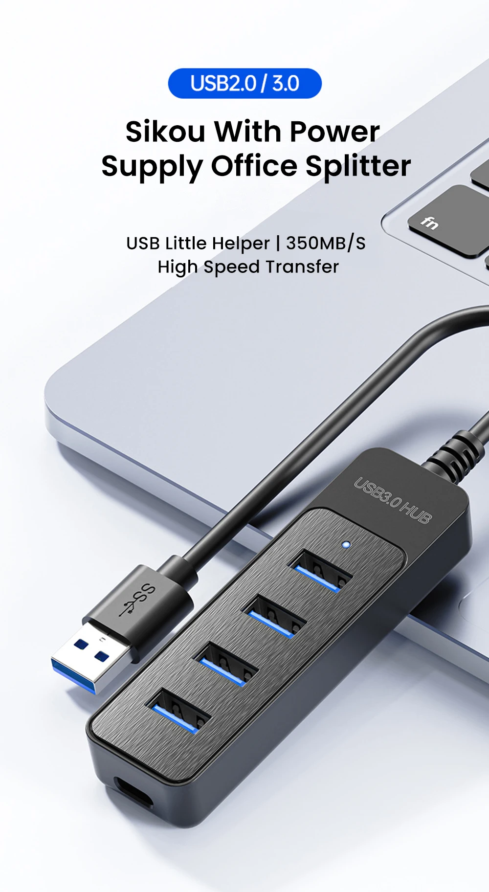 Elough-concentrador de red USB 3,0, 4 puertos, Multi USB 3,0 2,0, divisor, adaptador de corriente tipo c, expansor múltiple, base para Accesorios de ordenador