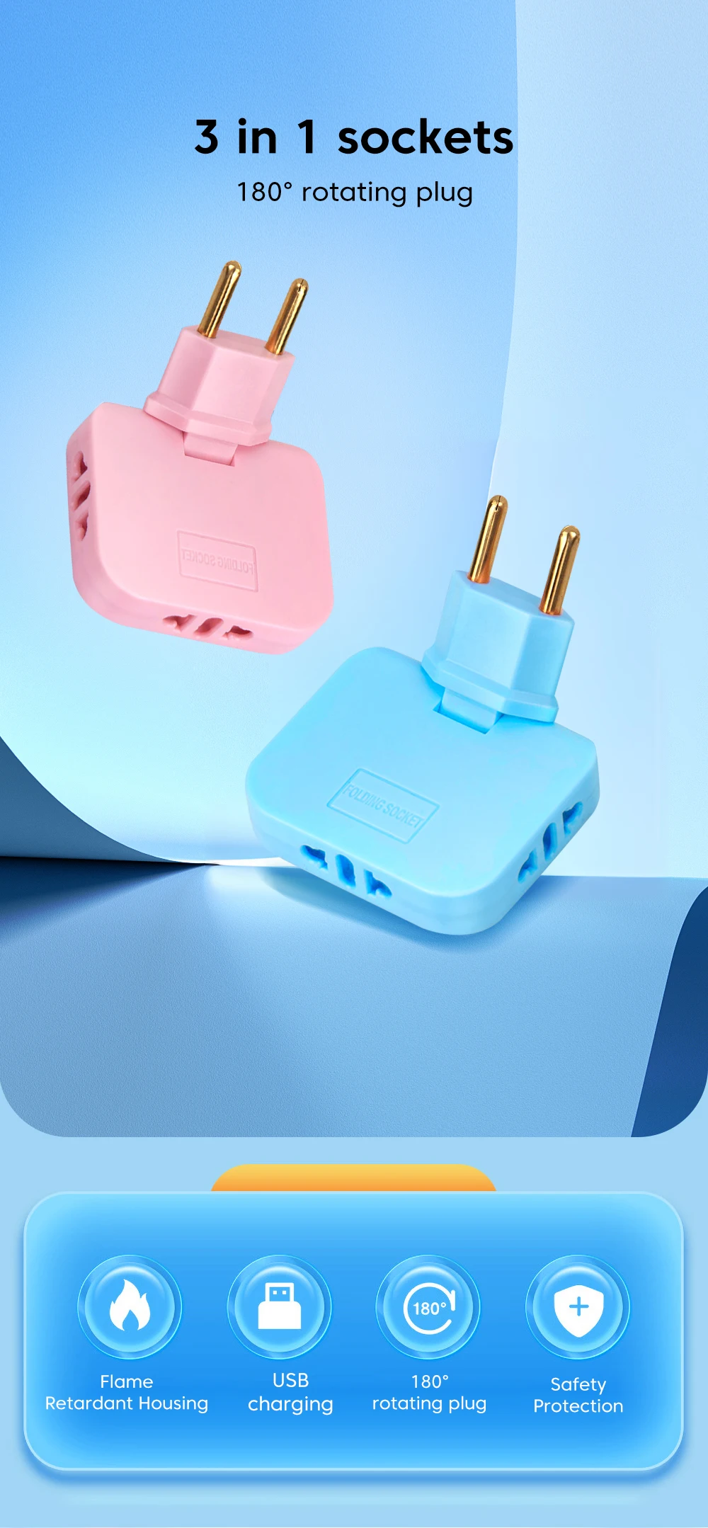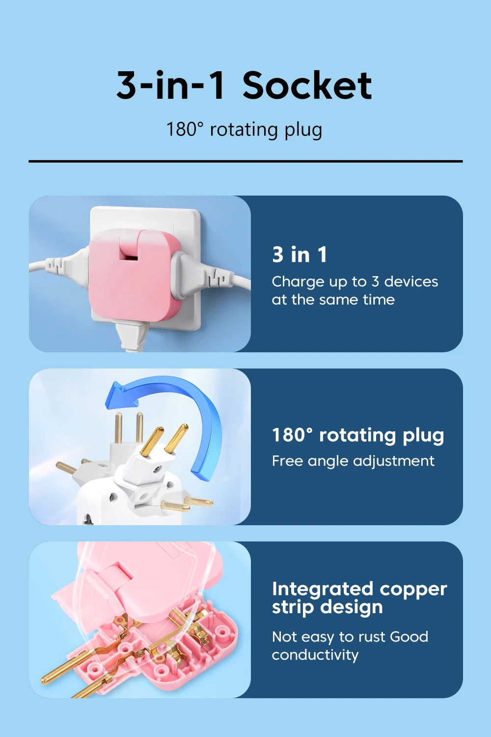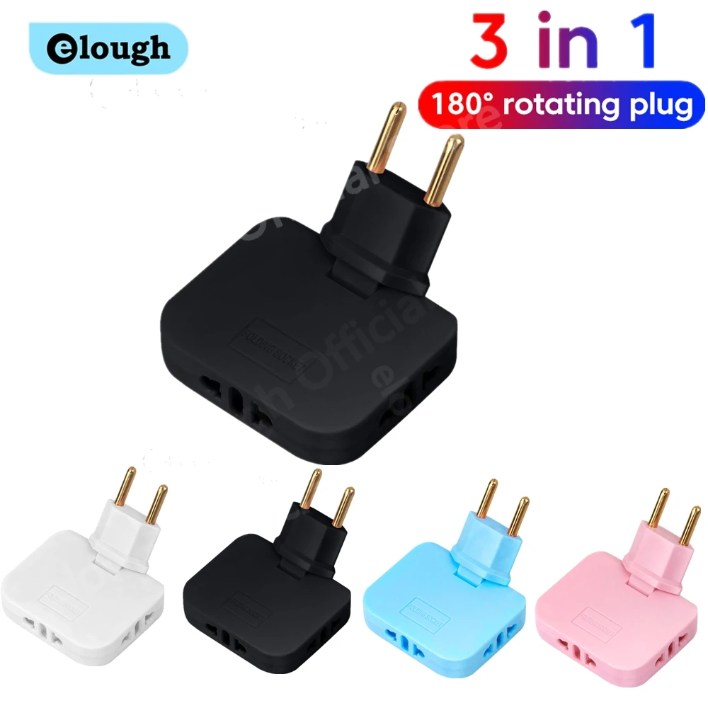 Elough-enchufe giratorio de 180 grados, 3 en 1, adaptador de viaje con enchufe europeo, enchufe de extensión europeo, adaptador de salida múltiple, convertidor de enchufes