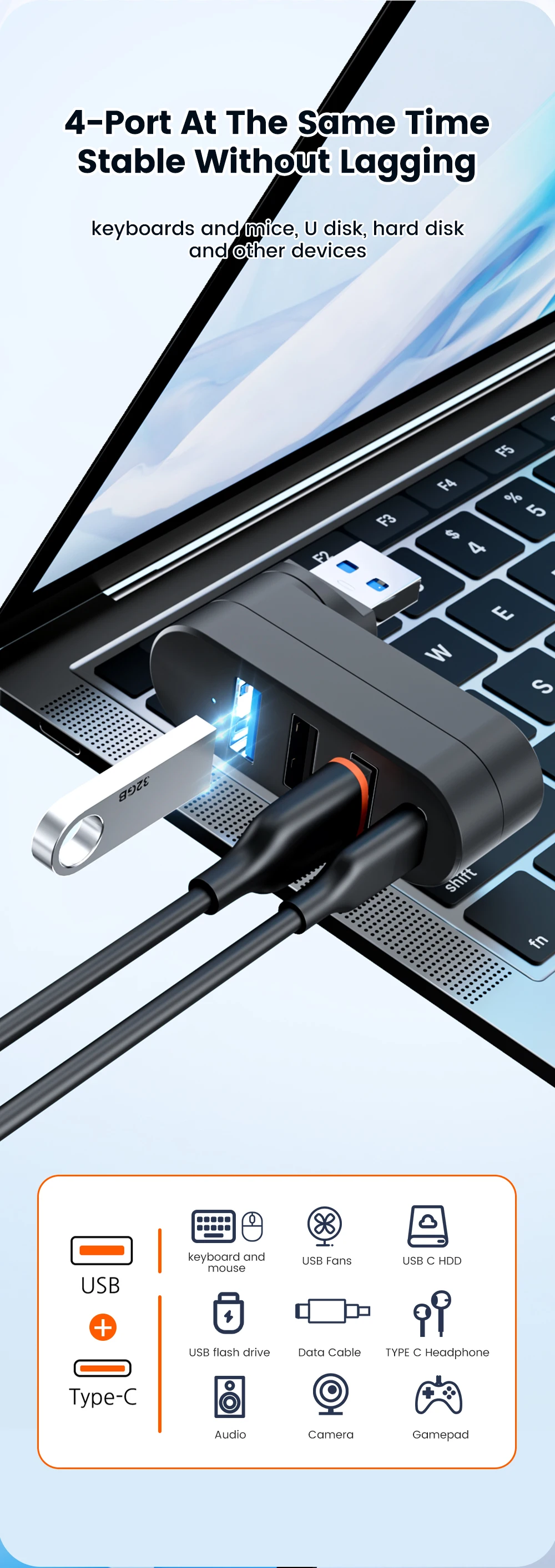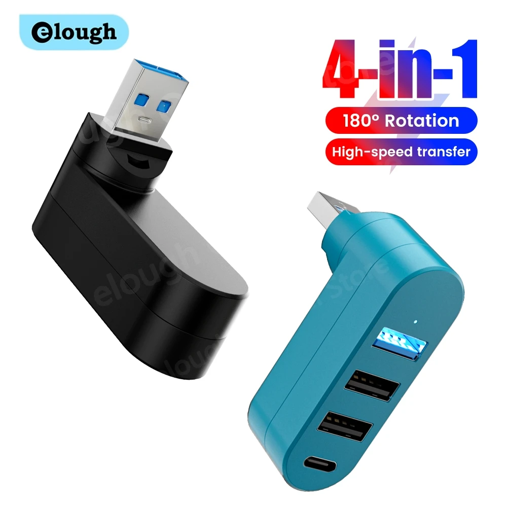 Comprar Elough-hub giratorio usb 3,0 2,0 tipo C, divisor de 4 puertos, expansor múltiple para PC, ordenador portátil, disco U
