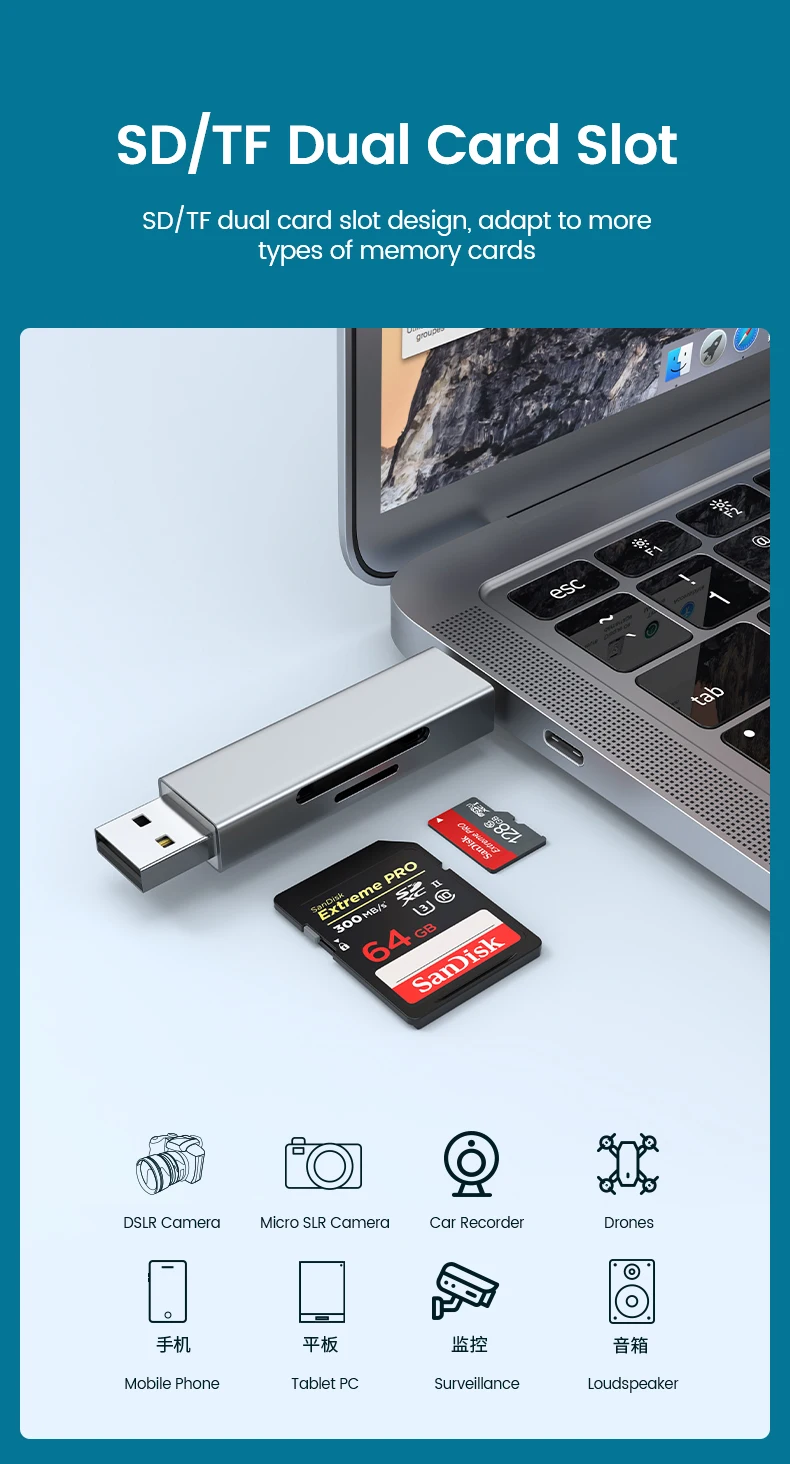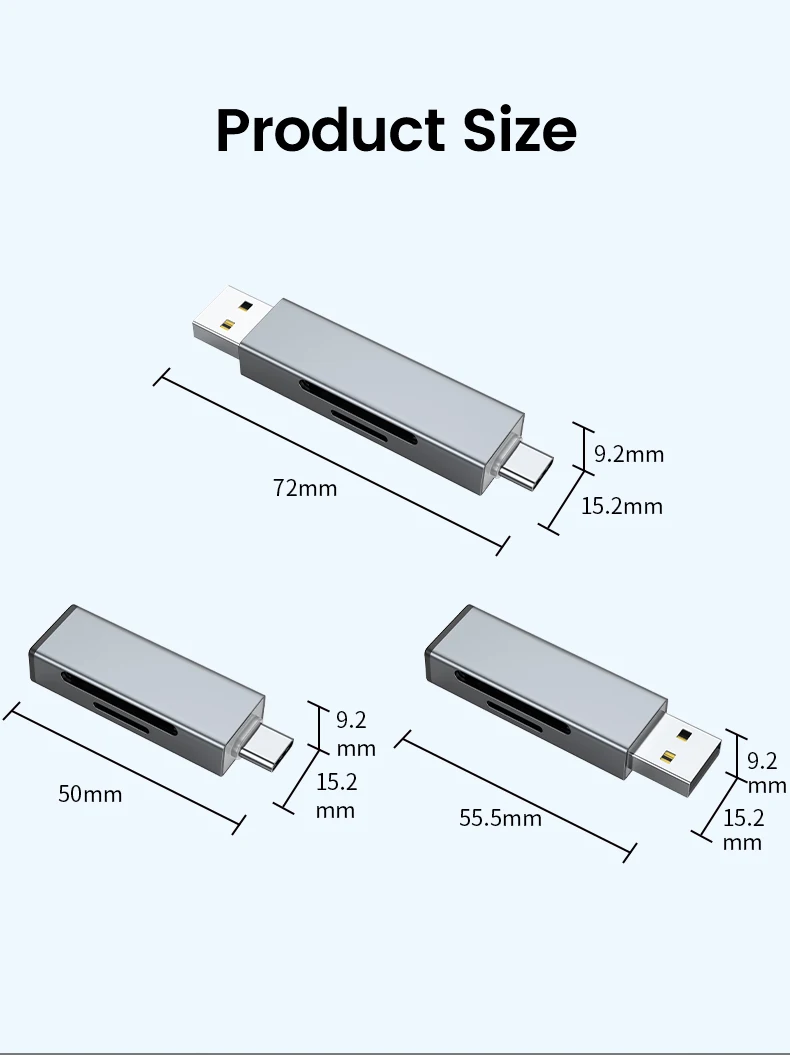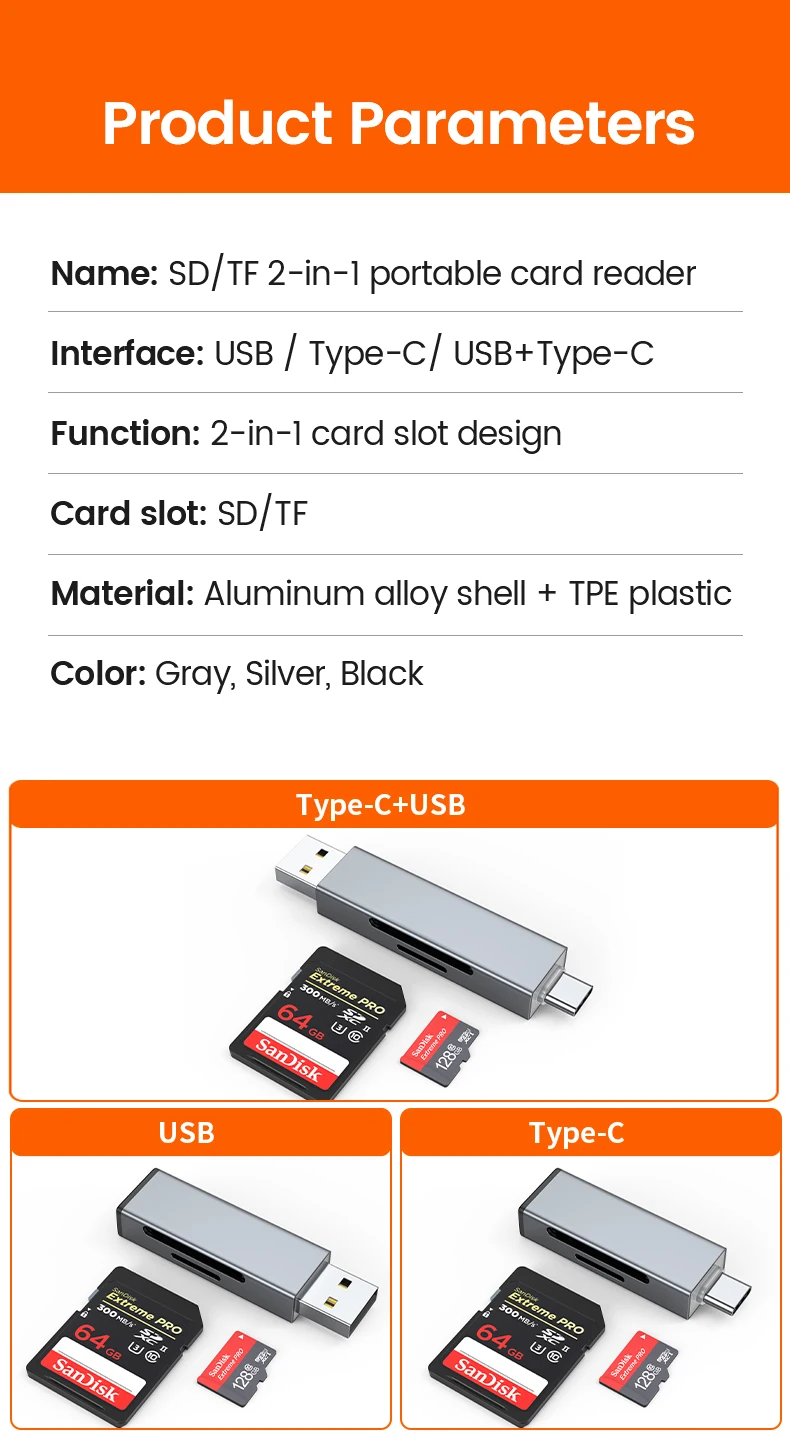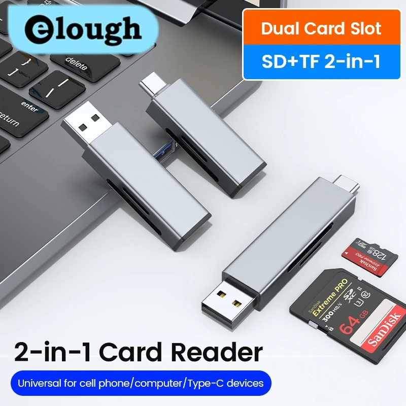 Comprar Elough-lector de tarjetas 2 en 1 USB/tipo C, adaptador de tarjeta de memoria inteligente para ordenador portátil, SD/Micro SD/TF OTG, USB 2,0, lector de tarjetas SD 2,0