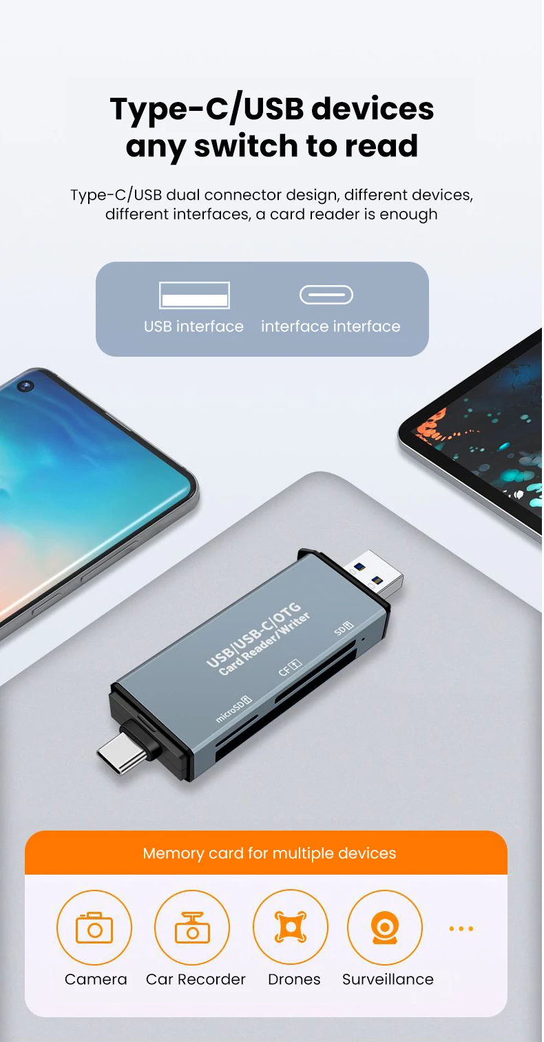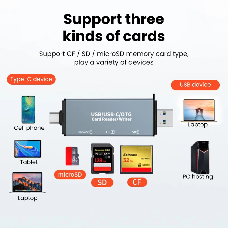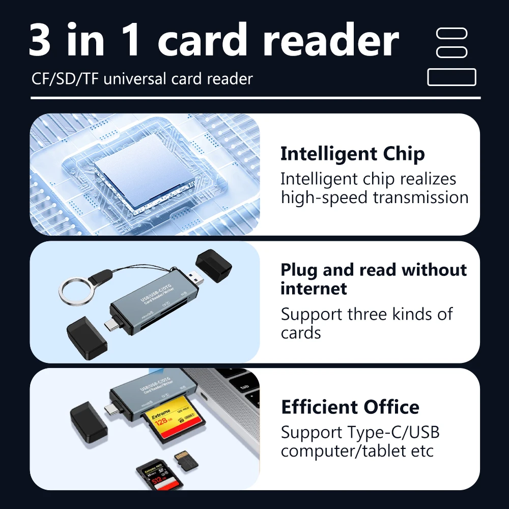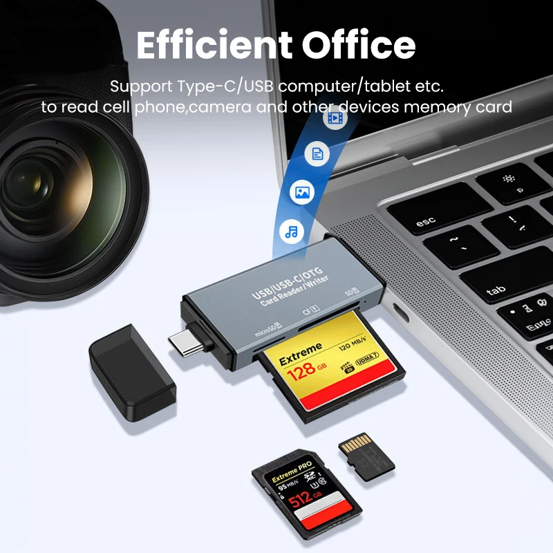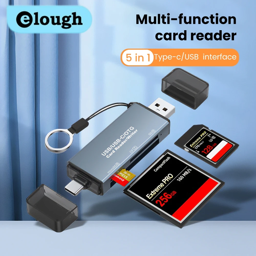 Comprar Elough-lector de tarjetas USB 3,0 5 en 1, tarjeta de memoria SD/CF/TF, Micro SD SLR, cámara tipo C, de doble uso OTG, USB para coche