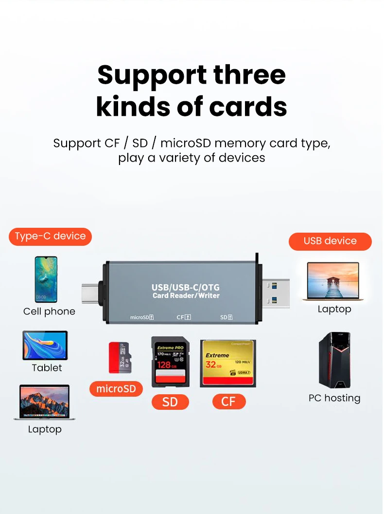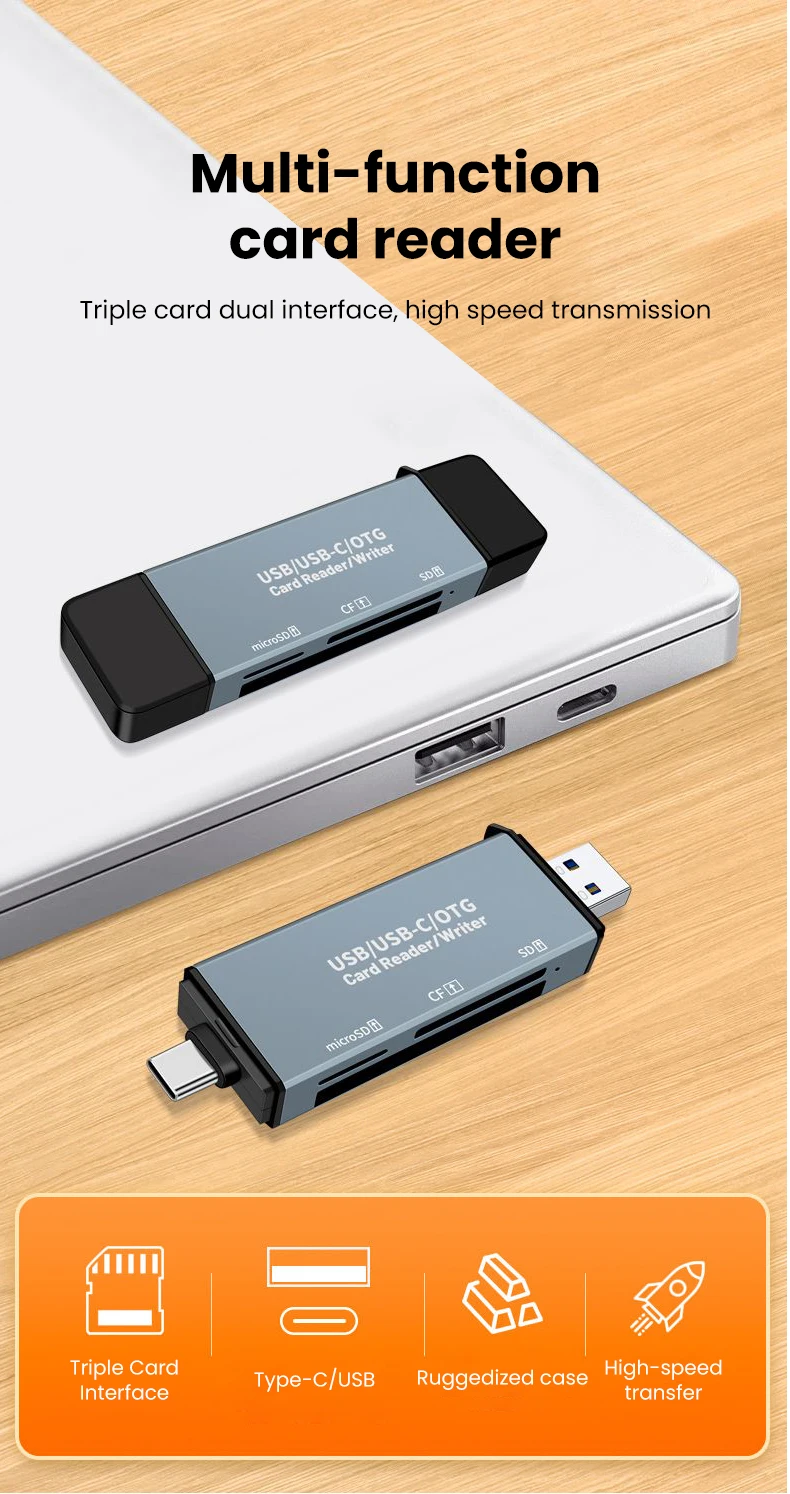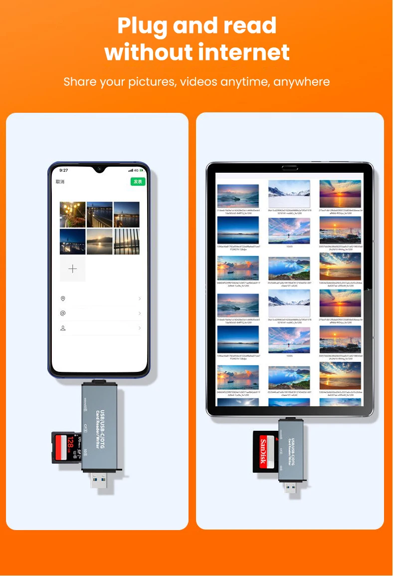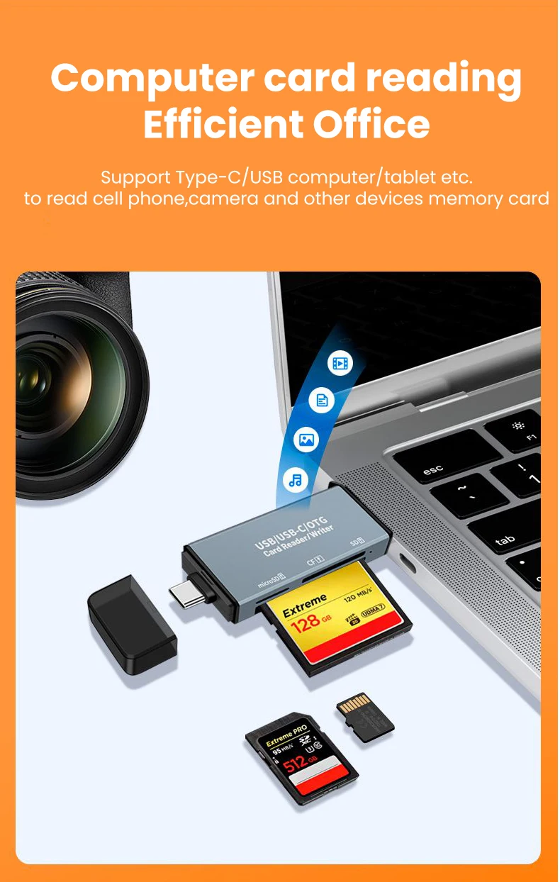 Comprar Elough-lector de tarjetas USB 3,0 5 en 1, tarjeta de memoria SD/CF/TF, Micro SD SLR, cámara tipo C, de doble uso OTG, USB para coche
