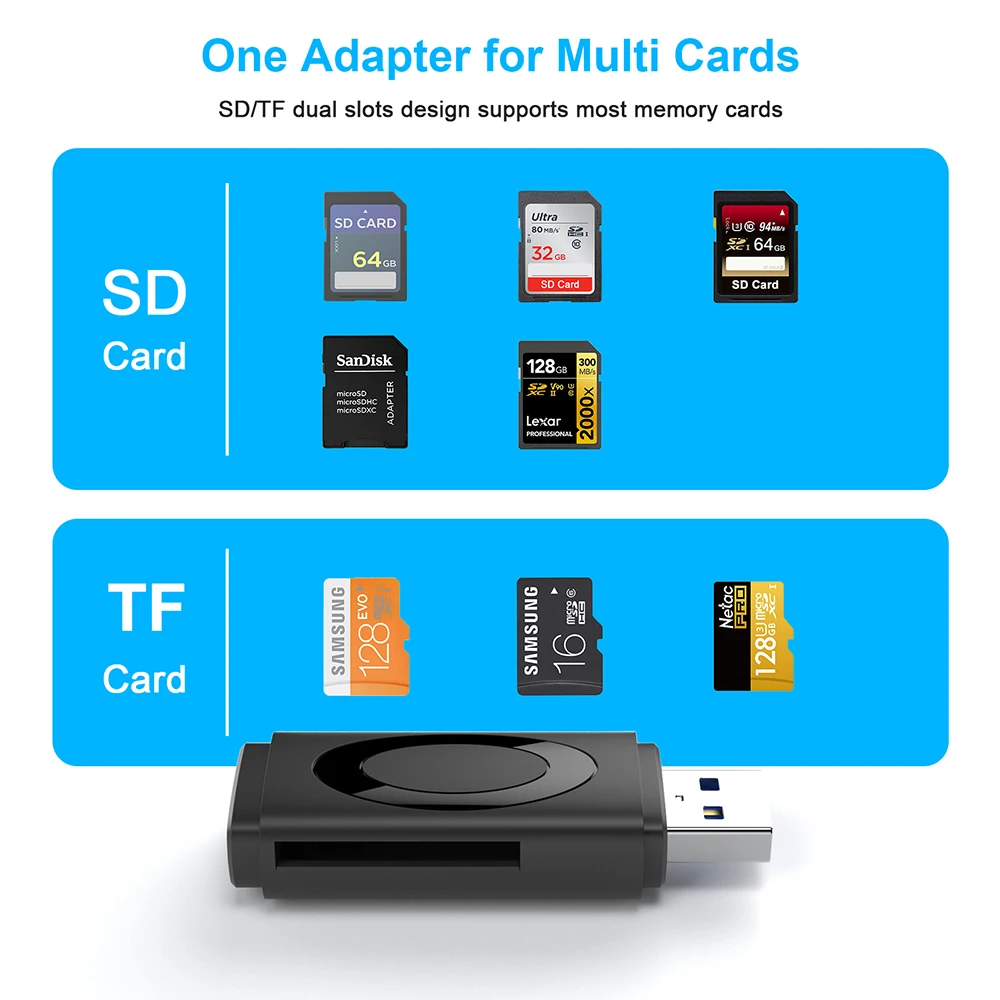 Elough-lector de tarjetas USB 3,0, dispositivo de memoria SD/TF 2 en 1, adaptador de escritura de tarjetas múltiples de alta velocidad, unidad Flash, Accesorios para ordenador portátil