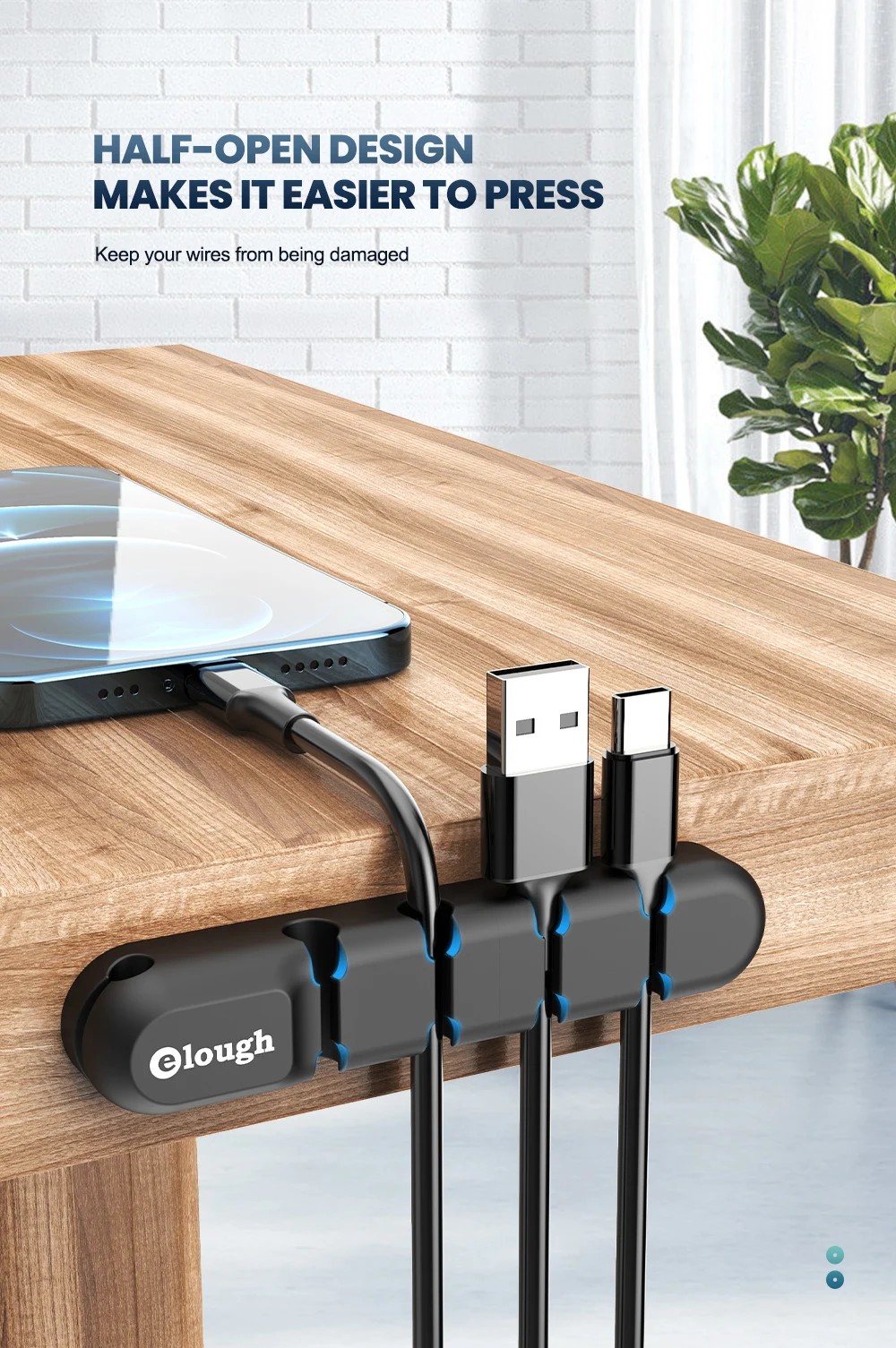 Comprar Elough organizador de cables de silicona, bobinador de cables USB, gestión ordenada de escritorio, soporte de cables de 3 Clips para ratón, 3 5 7 clips Organizador de cables, organizador de cables de auriculares