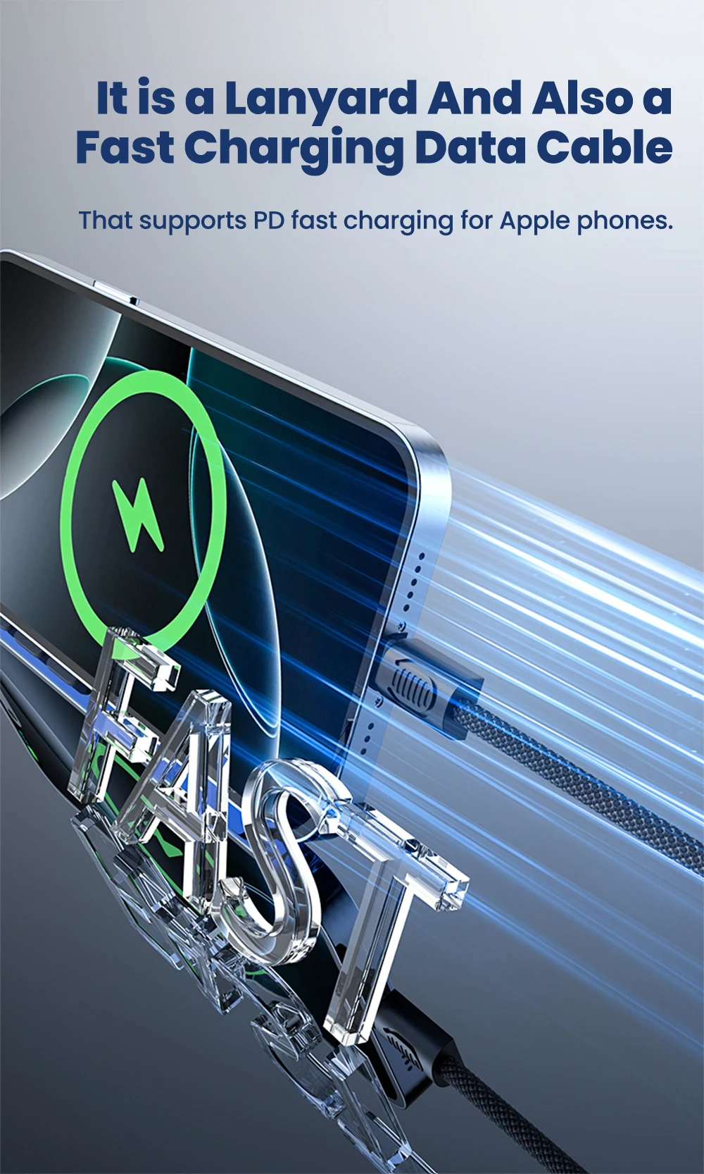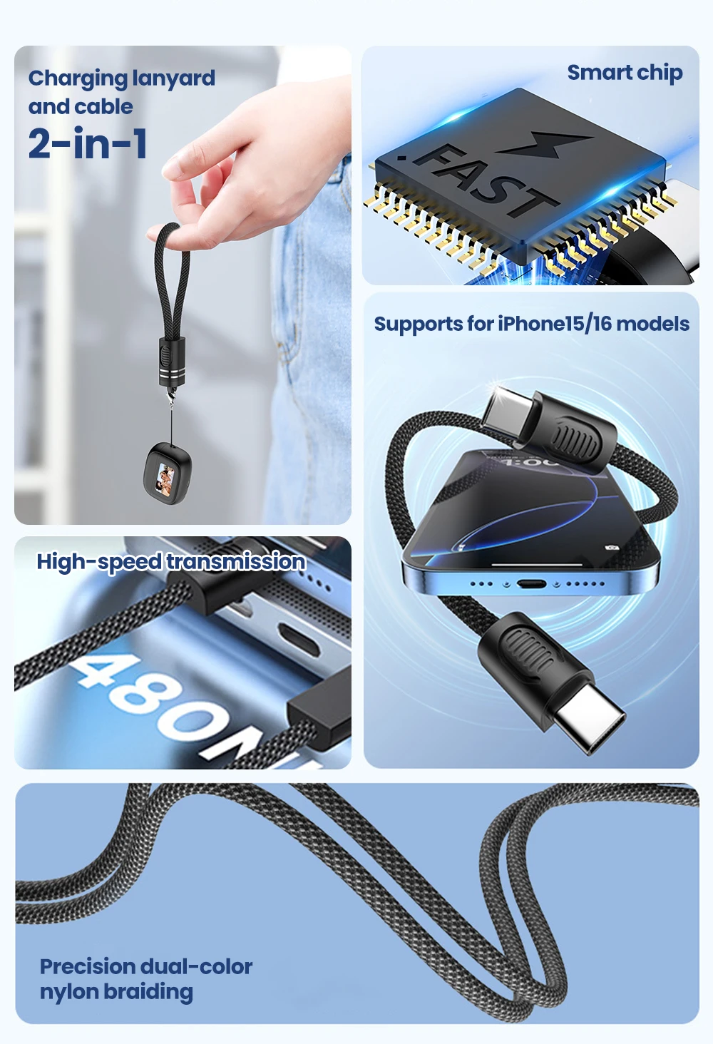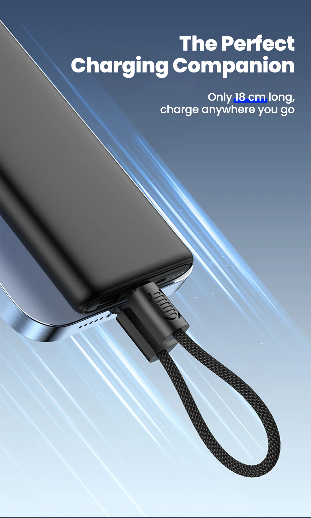 Elough PD 66W Cable corto tipo C a tipo C Cable de carga rápida portátil PD20W USB C a Lightning para iPhone 16 15