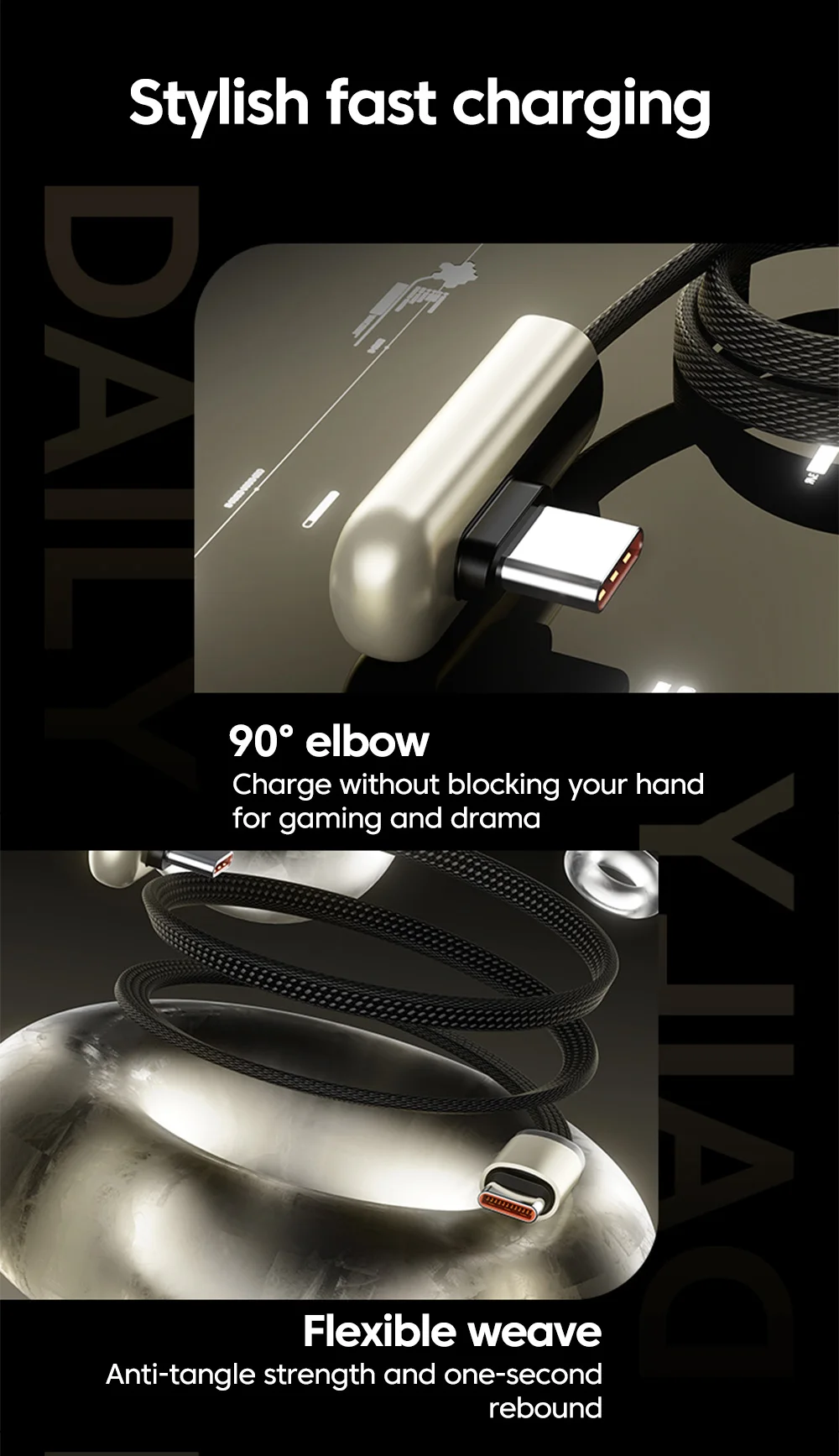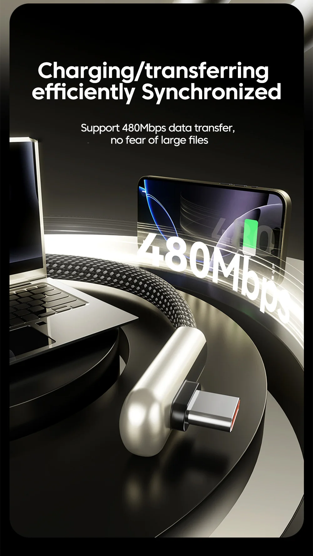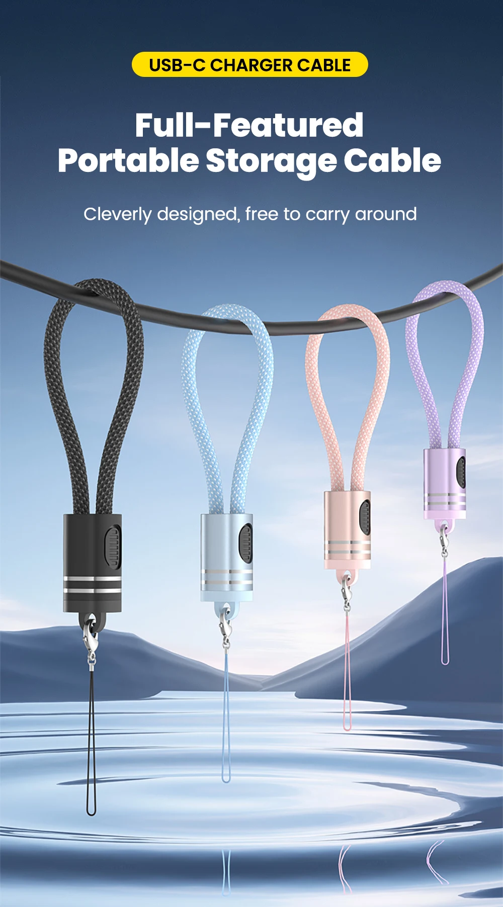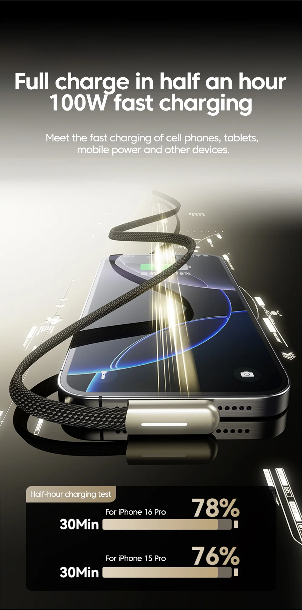 Elough PD 66W Cable corto tipo C a tipo C Cable de carga rápida portátil PD20W USB C a Lightning para iPhone 16 15