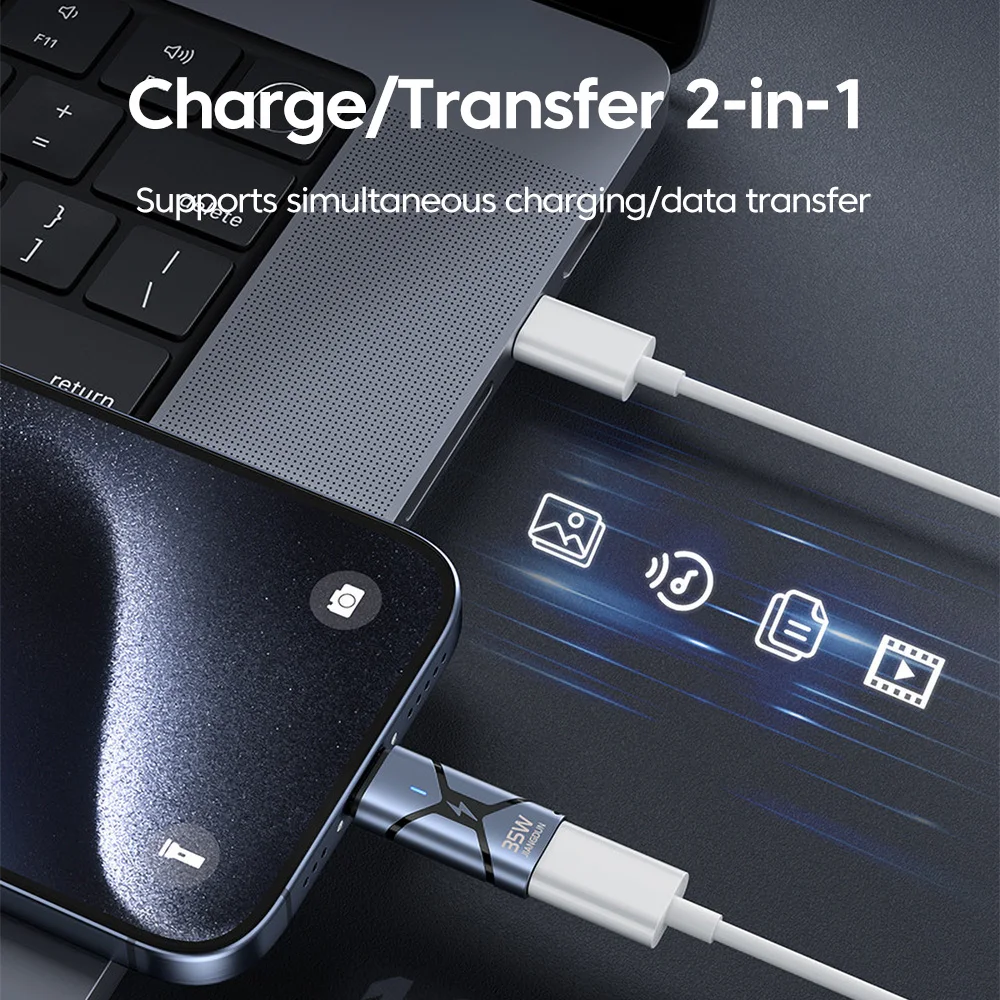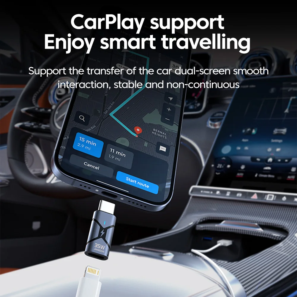 Carga rápida original de velocidad máxima de 35 W, admite transferencia de datos mientras se carga, admite CarPlay para automóvil, admite puerto Lightning original/terceros, compatible con puerto iPadC/puerto Android C.