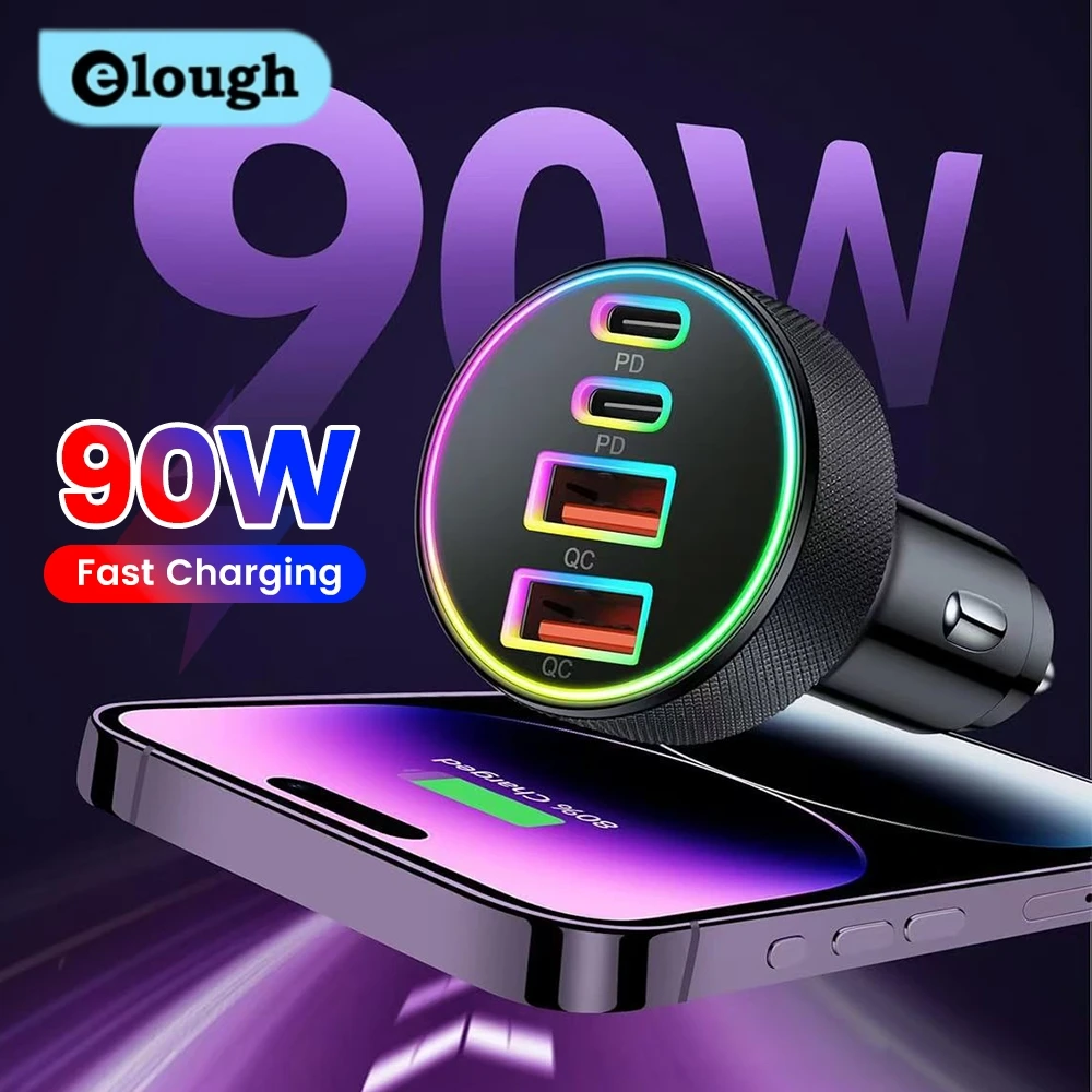Comprar Elough QC3.0 cargador de coche de aleación de aluminio PD20W cargador rápido tipo C adaptador en el coche para iPhone Samsung Xiaomi