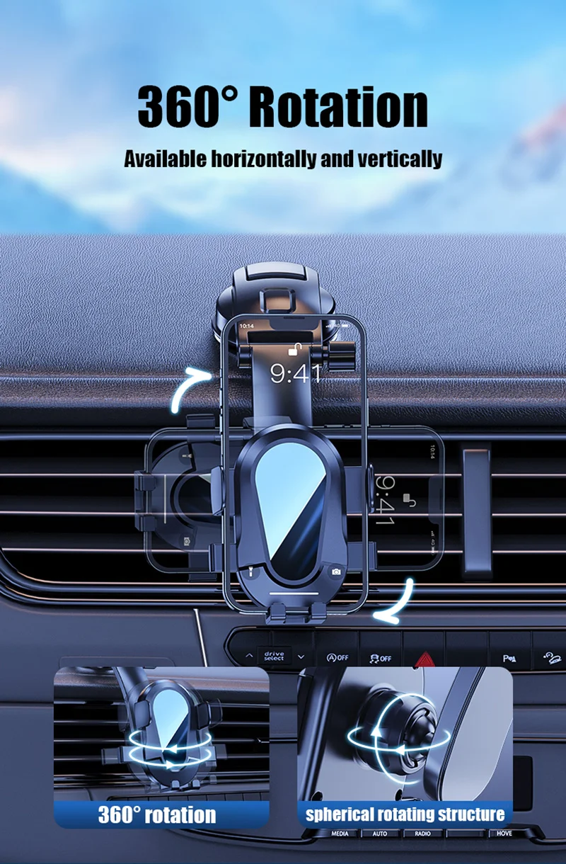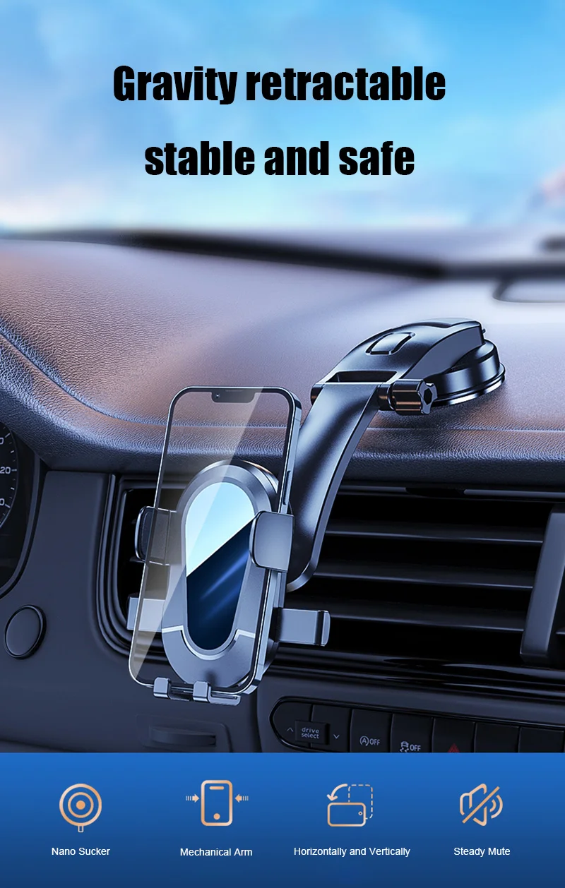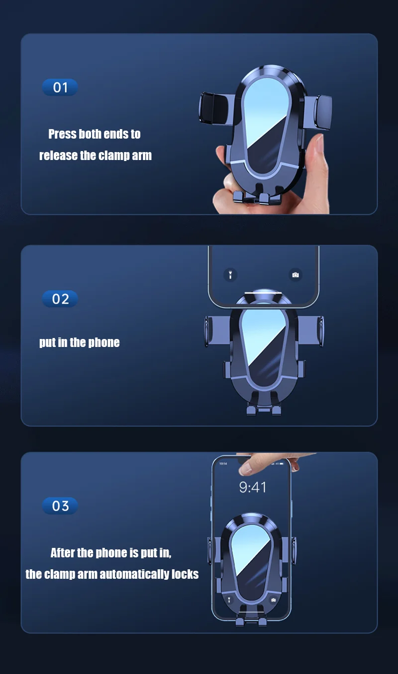 3. Después de colocar el teléfono, el brazo de la abrazadera se bloquea automáticamente.