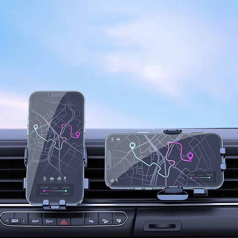 3. Después de colocar el teléfono, el brazo de la abrazadera se bloquea automáticamente.