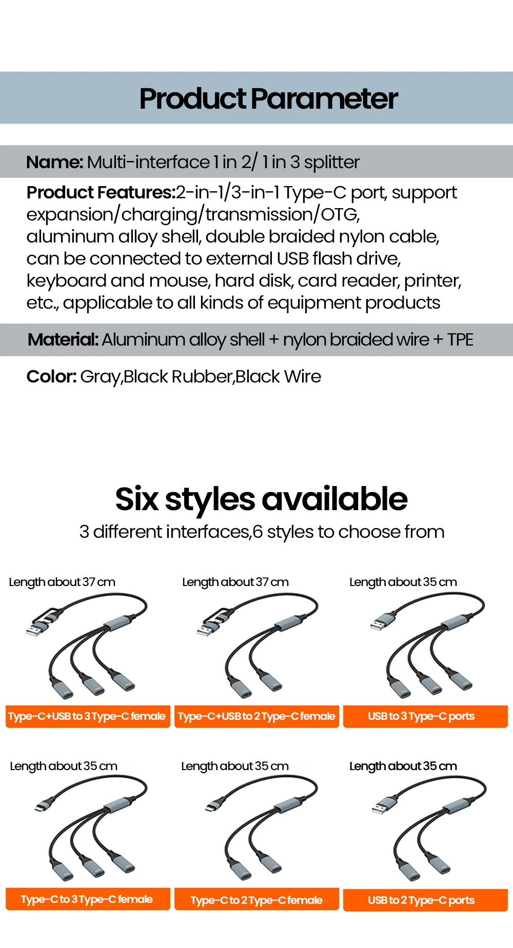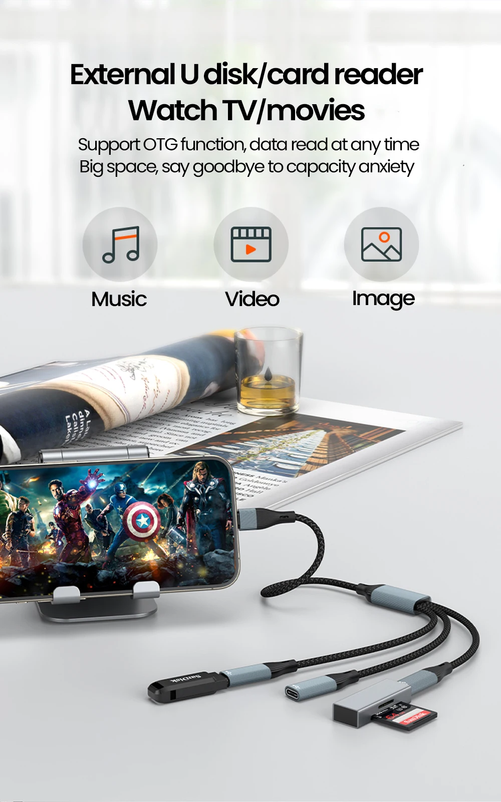 Comprar Elough USB a HUB tipo c Cable de carga adaptador divisor de transmisión OTG acoplamiento de computadora 3 en 1 HUB de puerto tipo c